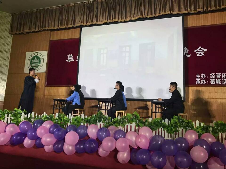 本次晚会由慕蝶话剧社承办,慕蝶话剧社作为经管学院的一个兴趣社团,为大学生提供了一个展现自我的平台,晚会的举办丰富了校园文化生活,增添学术文化氛围,更表达了同学们对新葡的京集团35222vip110周年纪念的衷心祝愿。