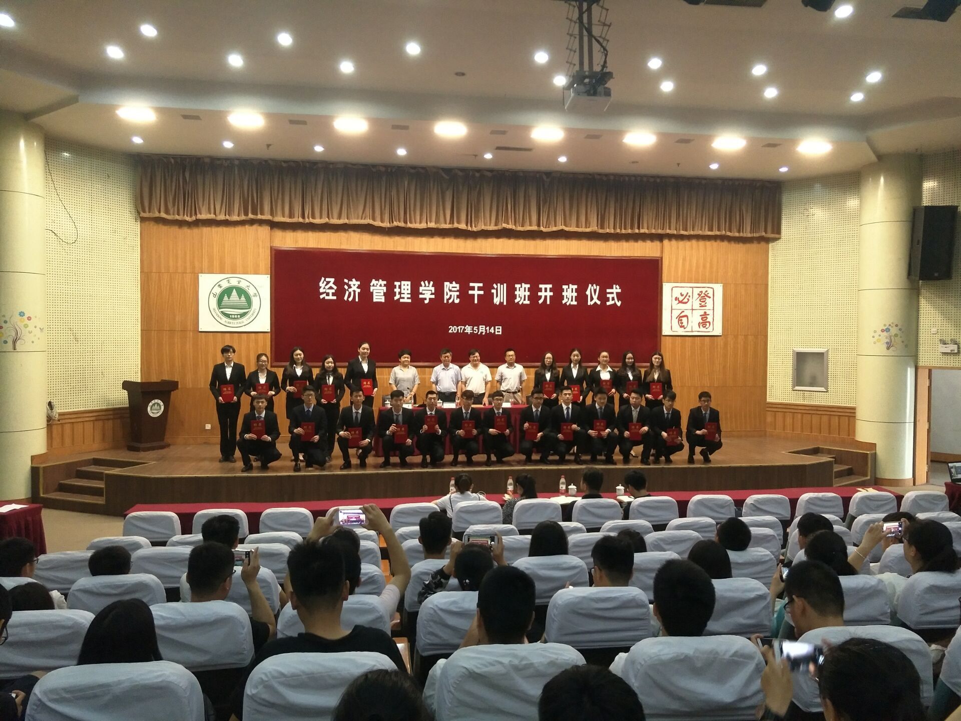 近期,经管学院学生会完成了换届,选举成立了新一届学生会主席团和学生会常委,各班级主要学生干部也进行了调整优化。为了让新一届学生干部对自己的身份有一个更好的定位,总结工作,查找不足,以更高的标准来做好学生工作,学院开办了2017年“干训班”,对主要学生干部进行培训。本次培训为期一个月,围绕理论学习、新媒体网络技术运用、新闻宣传、日常工作等方面,邀请校内外专家进行培训,广泛开展学院内部及各兄弟学院间的学生干部学习、交流、研讨。在开班仪式上,为新一届学生会常委颁发了聘书。