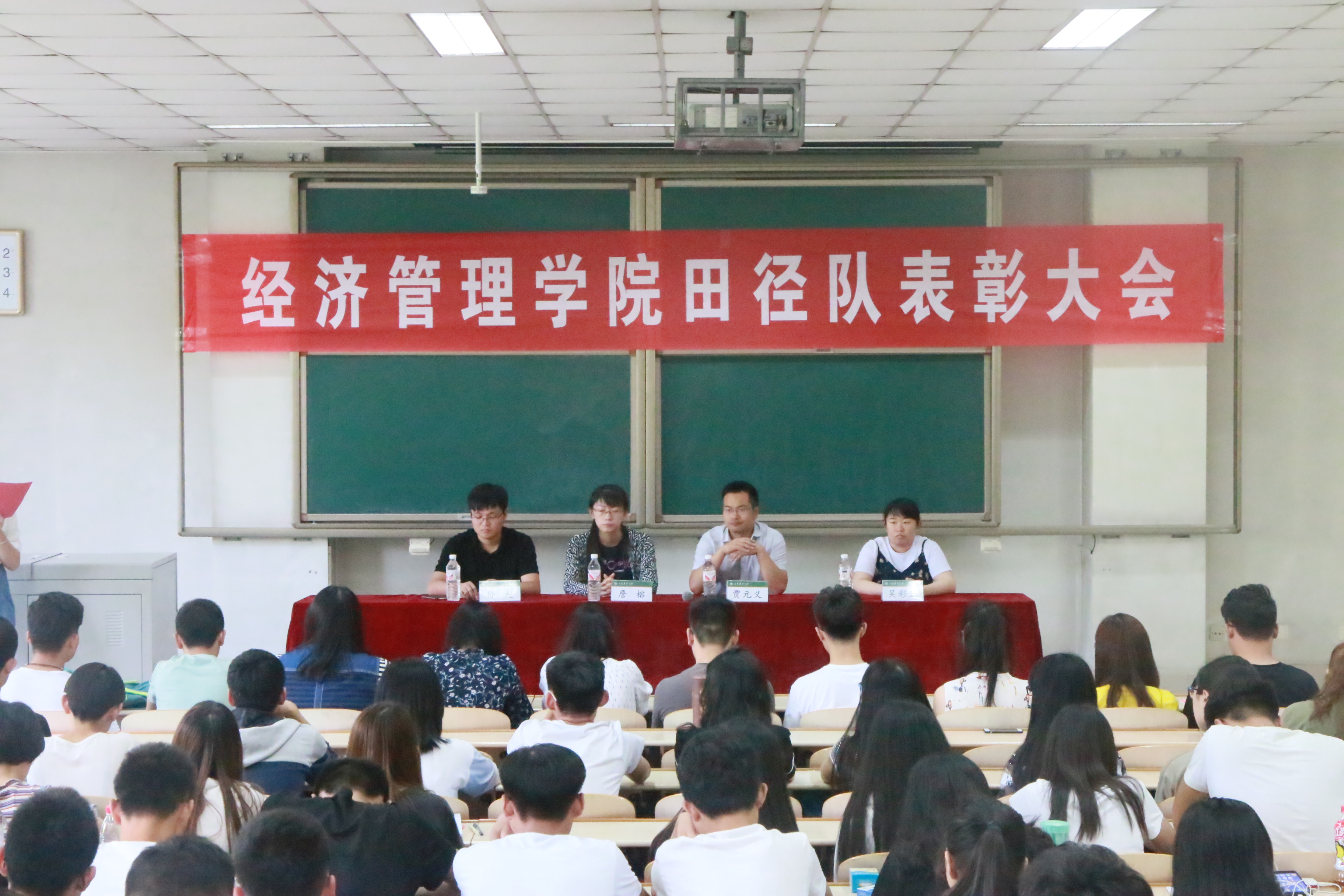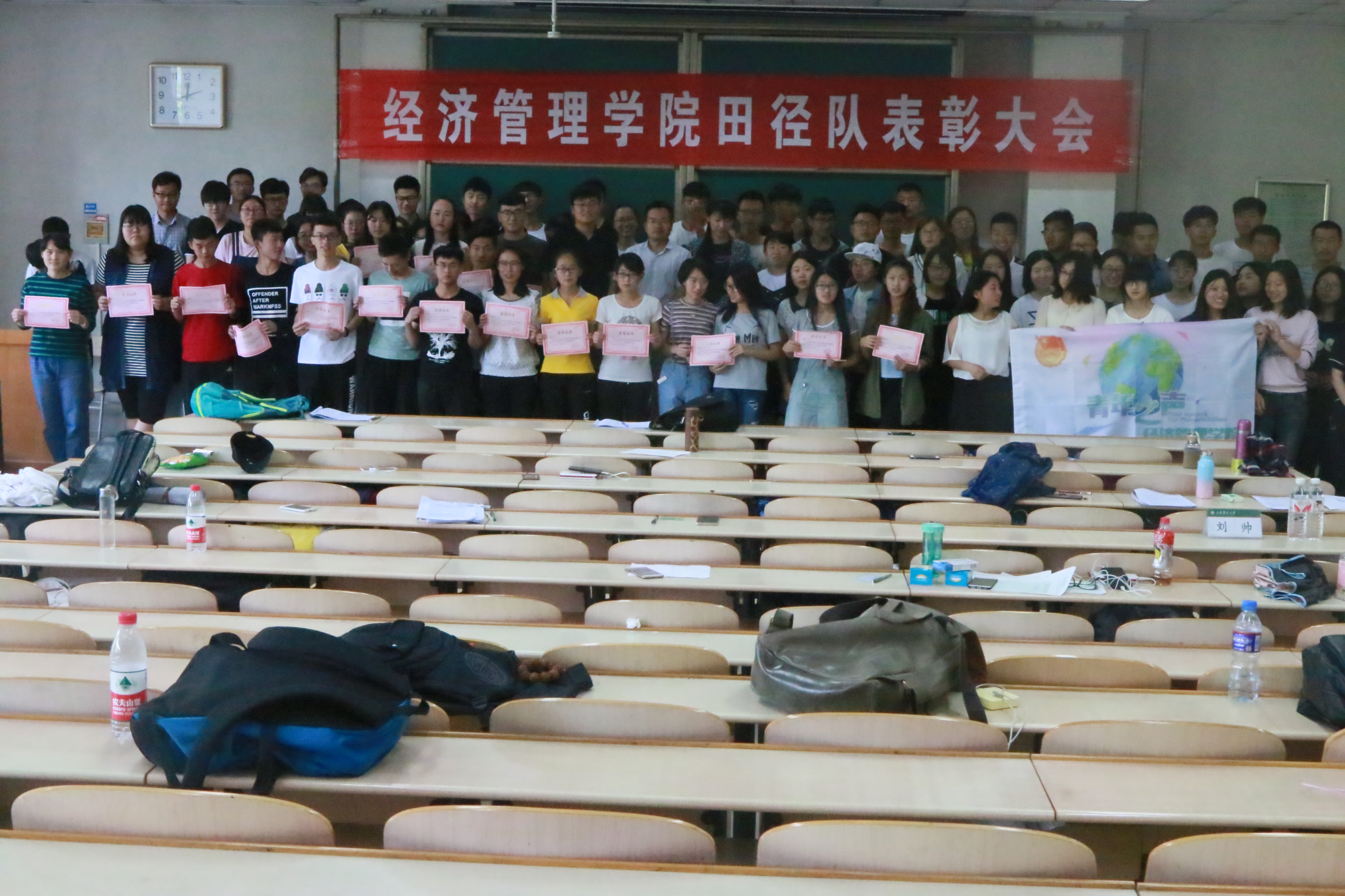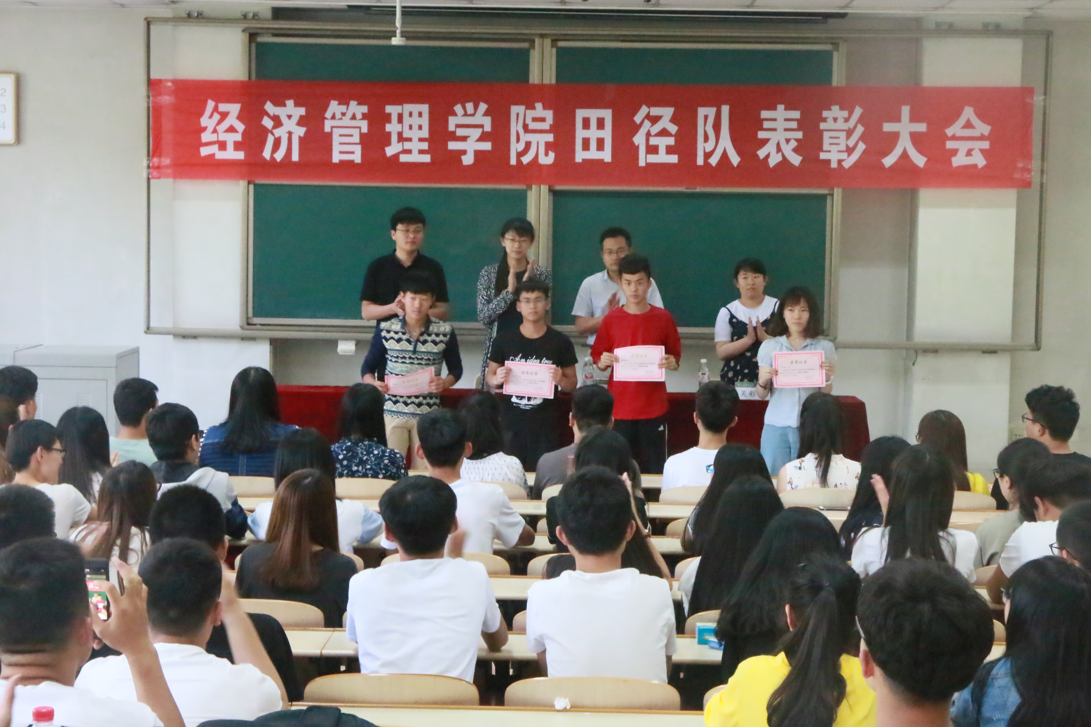 5月17日中午,经管学院举办2017年田径运动会总结表彰大会,学院全体团委老师出席本次会议。共有112名学生获得表彰,其中45人获突出贡献奖、26人获优秀运动员奖、41人获精神文明奖。