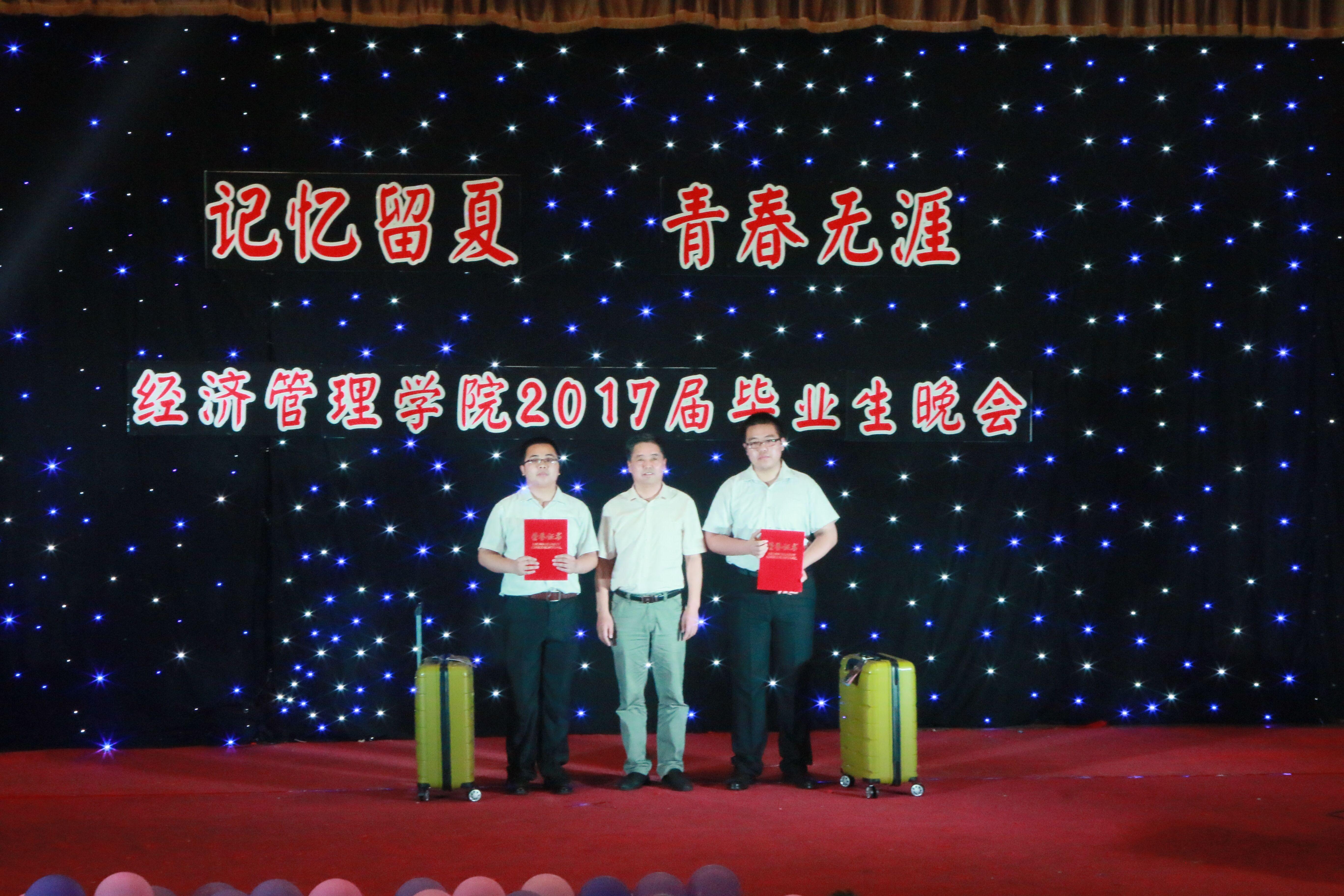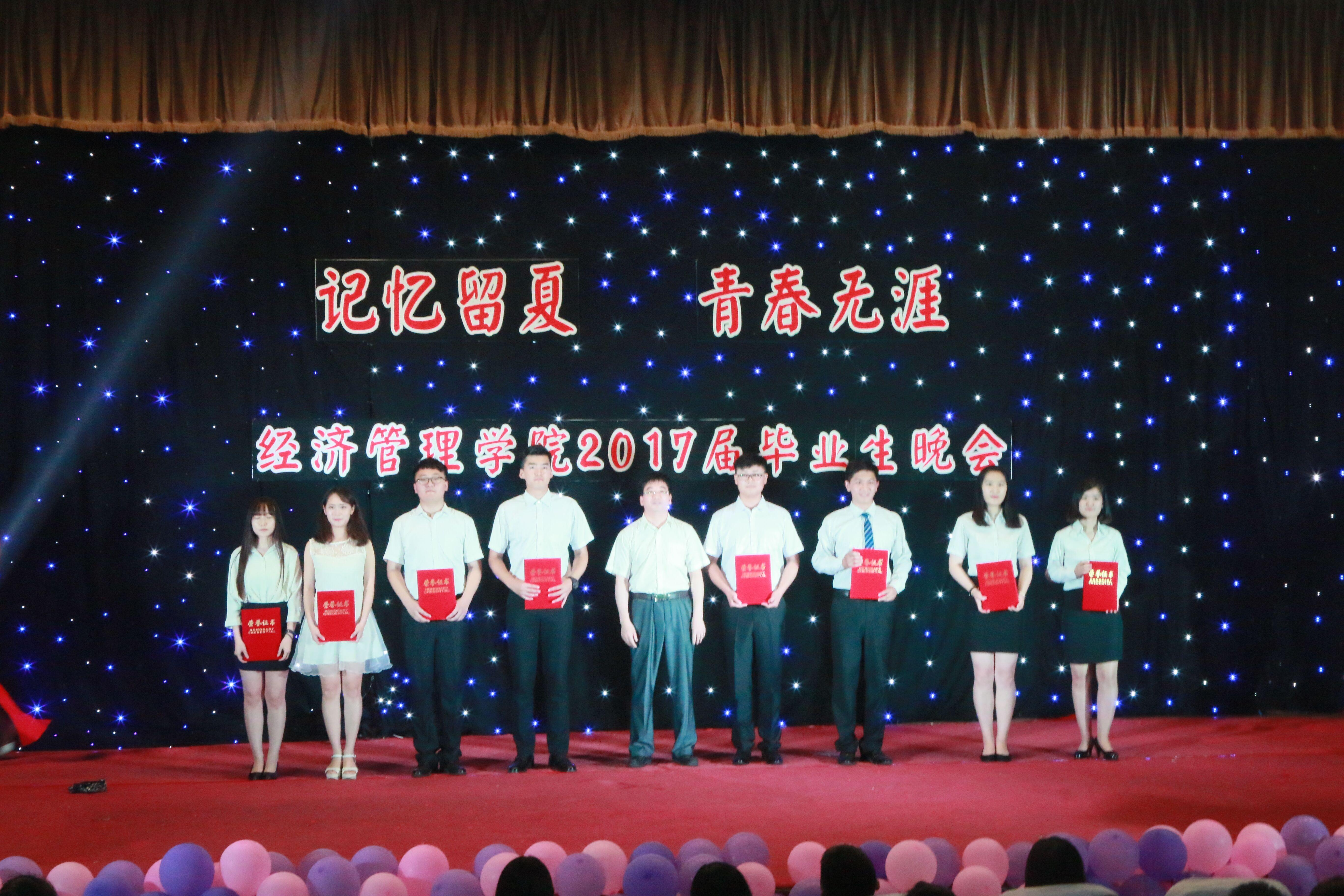 在晚会中场对优秀毕业生和山东计划、西部计划志愿者进行了表彰。院长陈盛伟为优秀毕业生代表颁奖,表达了对毕业生的留恋与不舍,为毕业生上了“最后一课”。他希望毕业生能在高飞之际,勿忘母校,学会感恩,时刻铭记住“登高必自”,在人生路上勇于攀登,实现自我价值。党委书记魏立政为志愿者代表颁发了志愿证书,表达了对经管学子奉献精神的欣慰之情,并鼓励毕业生努力奋斗,创造更美好的明天。