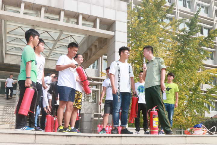 本次演练模拟学校人员密集场所和高层建筑发生火灾,参训师生就报警、疏散、逃生、救助等相关环节开展演习。泰安市消防支队监管科科长周凯向新生们讲解消防安全知识,并结合火灾案例对灭火器、缓降器、消防栓等消防器材的使用进行现场教学。公安处组织学生使用灭火器扑灭初起火灾的实战演练,让同学们实际操作灭火器材,亲身体验灭火过程,达到了提高学生防火救灾能力的预期效果。