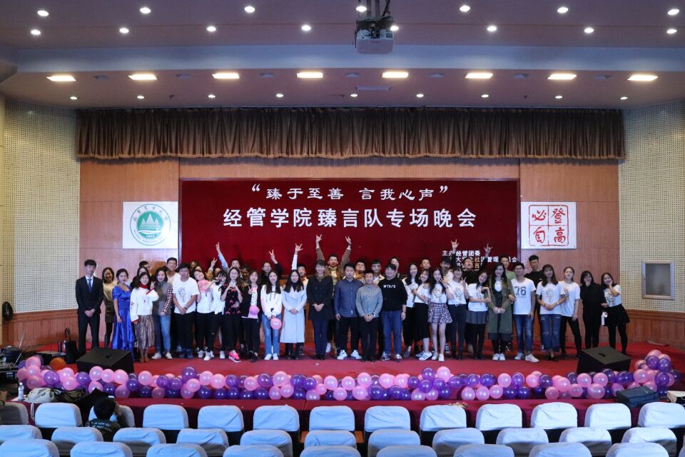 10月24日晚,由经管团委主办、大学生社团管理委员会和经管臻言队承办的“臻于至善 言我心声”专场晚会在南校区第一学术报告厅举行。经管团委老师和部分17级新生共同观看了本次晚会。