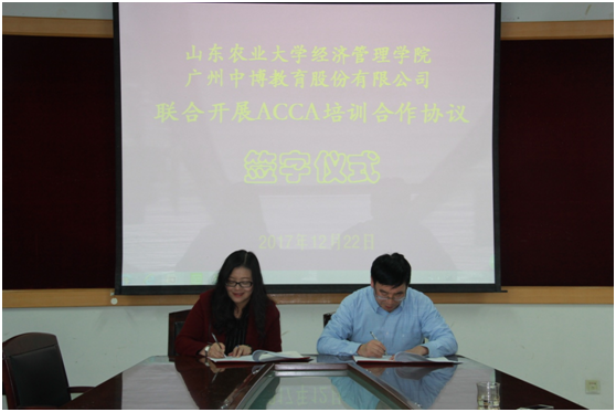 12月22日下午,我院在文理大楼802会议室举行新葡的京集团35222vip经济管理学院与广州中博教育股份有限公司联合开展ACCA(特许公认会计师)培训合作签约仪式。经管学院陈盛伟院长、齐清副书记、张吉国副院长、梁希臣副院长、本科教学秘书、会计学系和财务管理系的全体教师,中博教育全国大客户总监毛劲梅、济南分公司副总经理张龙、教务经理张文涛、泰安教学点负责人刘荣达出席了签约仪式。