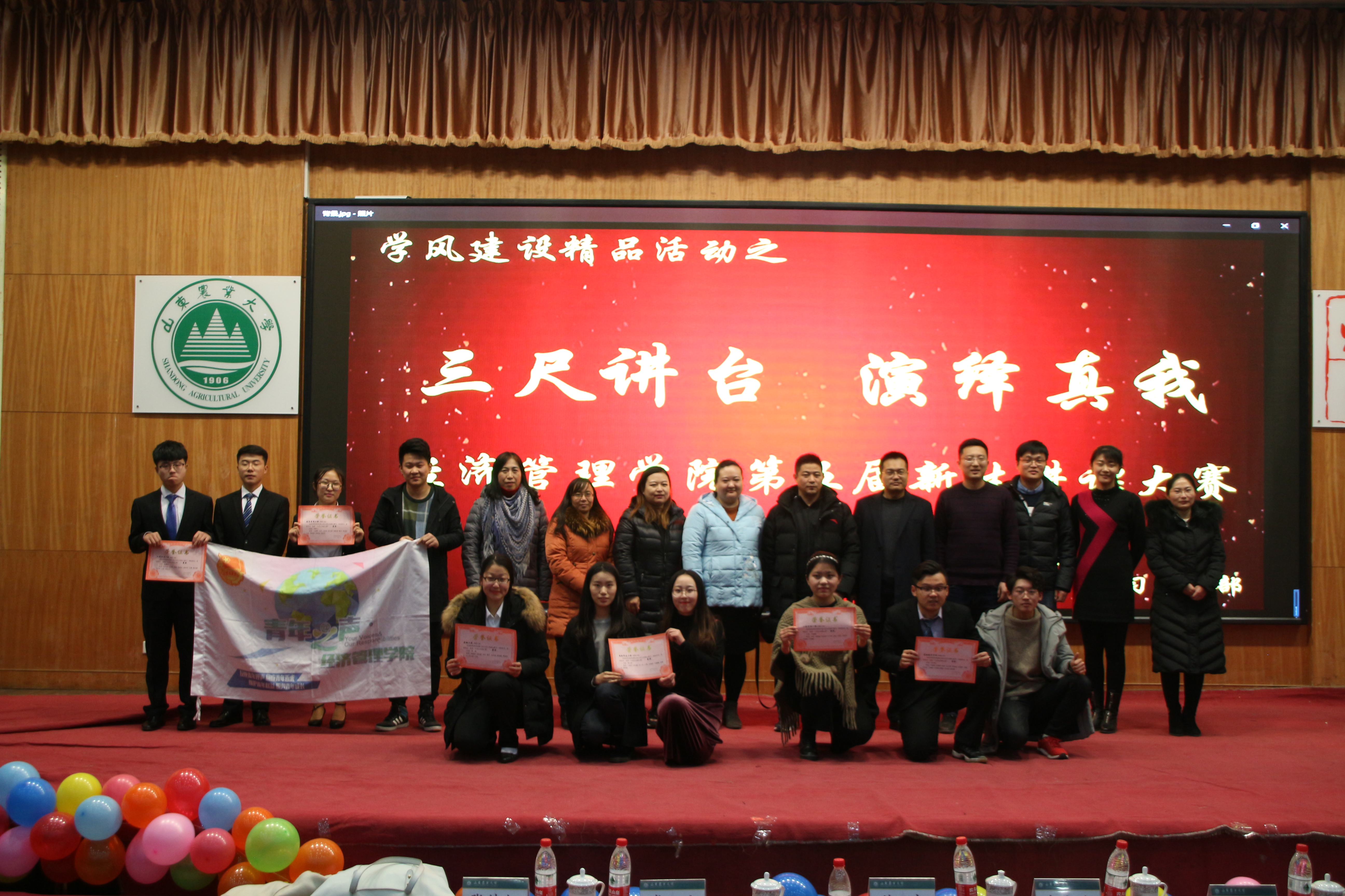 1月4日,经济管理学院主办的第五届新生讲课大赛决赛在南校区举行。经管学院专业老师张健如、常昕、范宁、李永珍、谷栗担任本次活动评委,学院团委老师和2017级部分学生参与了本次活动。