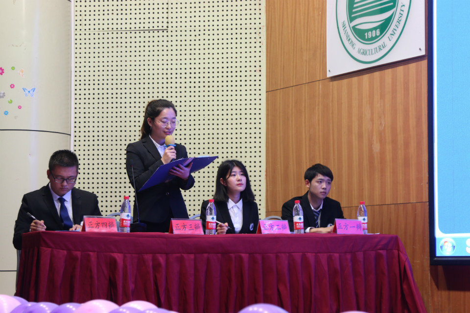 决赛在“团结就是力量队”和“知行队”之间展开,以“留学回国是个人问题还是社会问题”为辩题进行了激烈辩驳。正方从留学回国的个人需求随时代发展更突出以及个人发展的决定作用着手立论,反方则从社会影响社会关注等方面深入阐述本方观点。场上双方你来我往,唇枪舌战,引得场下掌声连连。赛后,冯哲老师对本场比赛进行点评,他鼓励同学们要相信辩论带给大家思维与逻辑的力量,打辩论要重视收集相关资料,做到“有理有据”。