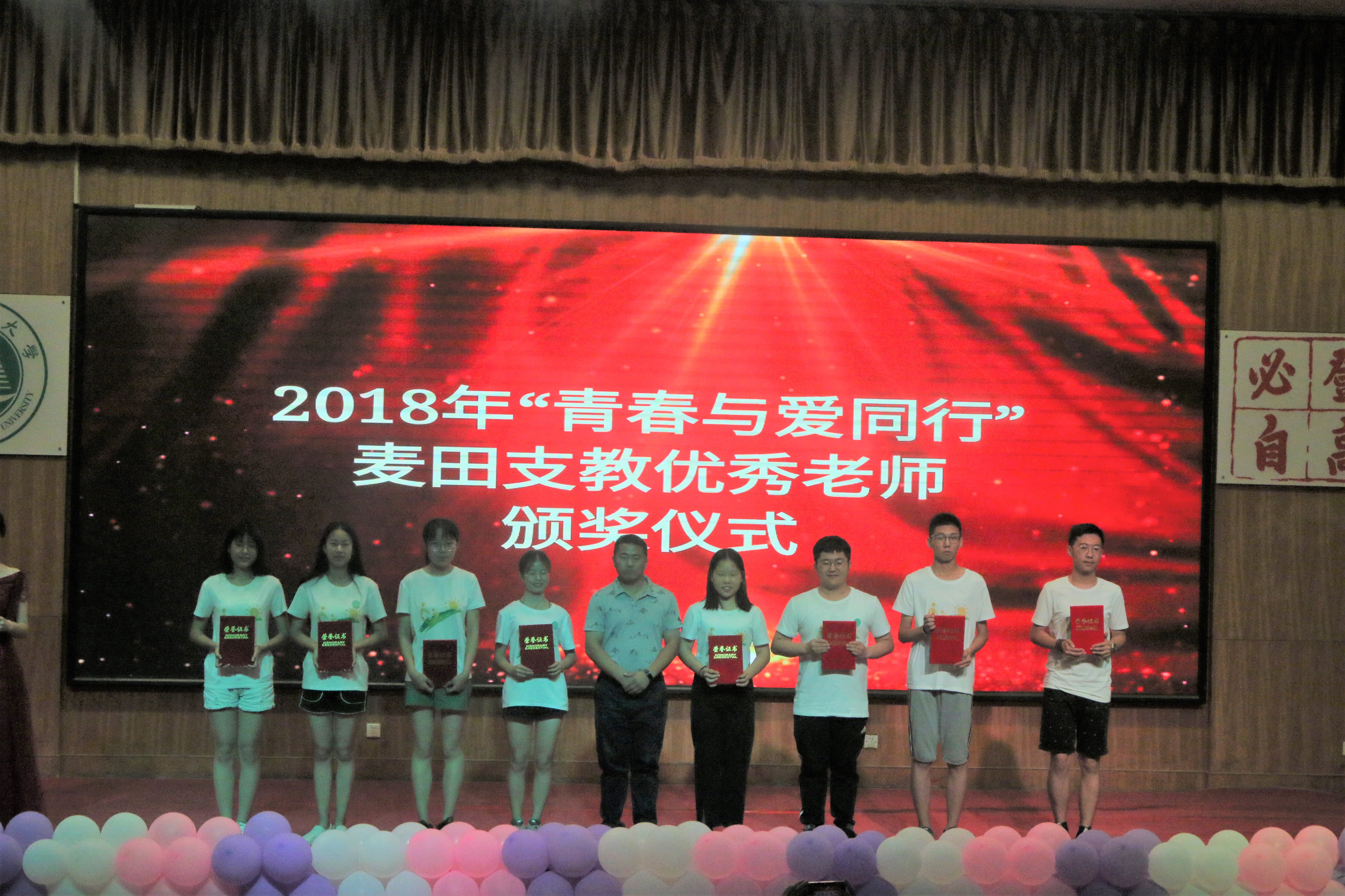 表彰大会上进行了麦田支教2018年度优秀支教教师和优秀支教领队的表彰活动。刘畅、陈颖等 16人获得优秀支教教师荣誉称号,张震、童笑笑等5人获得优秀支教领队荣誉称号。