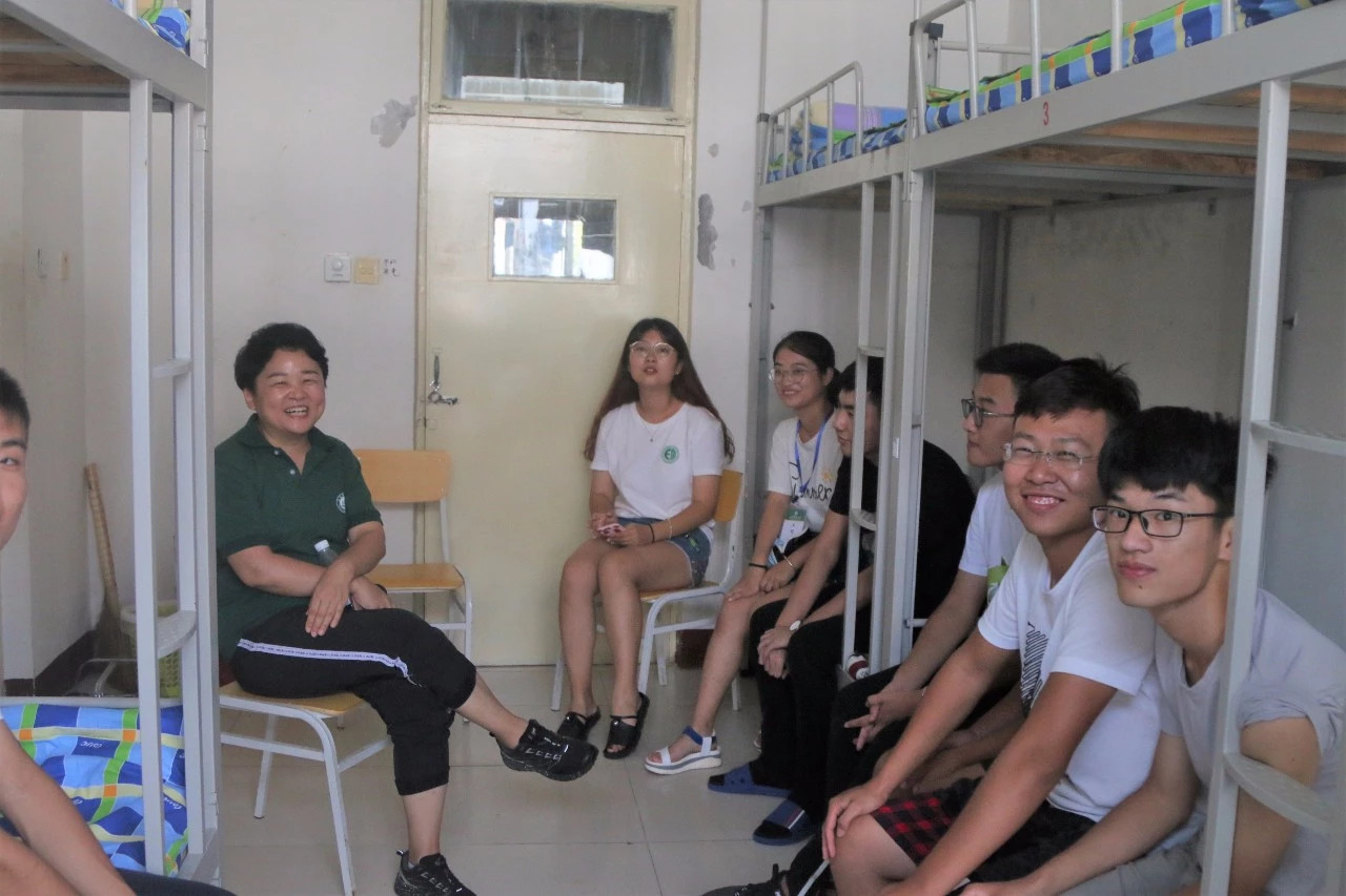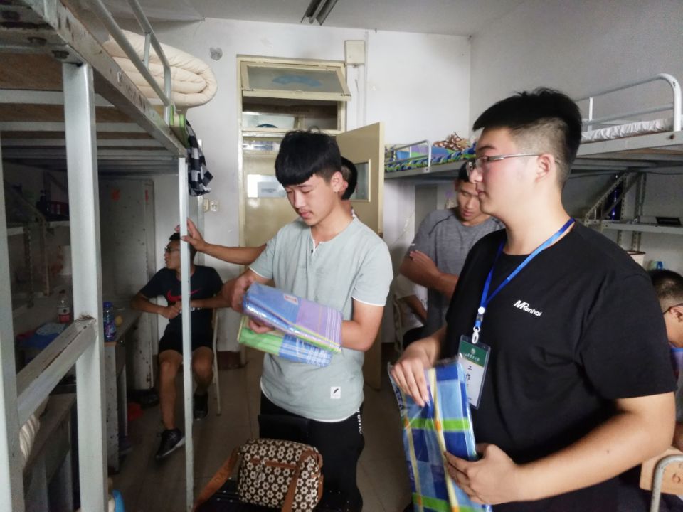宿舍中,新同学一边整理个人物品,一边与新舍友们热情交谈。学院领导、班主任老师来到宿舍看望新同学,询问同学们的情况,并表达了对同学们的关心。各班班助朋辈在结束迎新工作后,也纷纷来到宿舍看望班级同学,为他们答疑解惑,提供帮助。