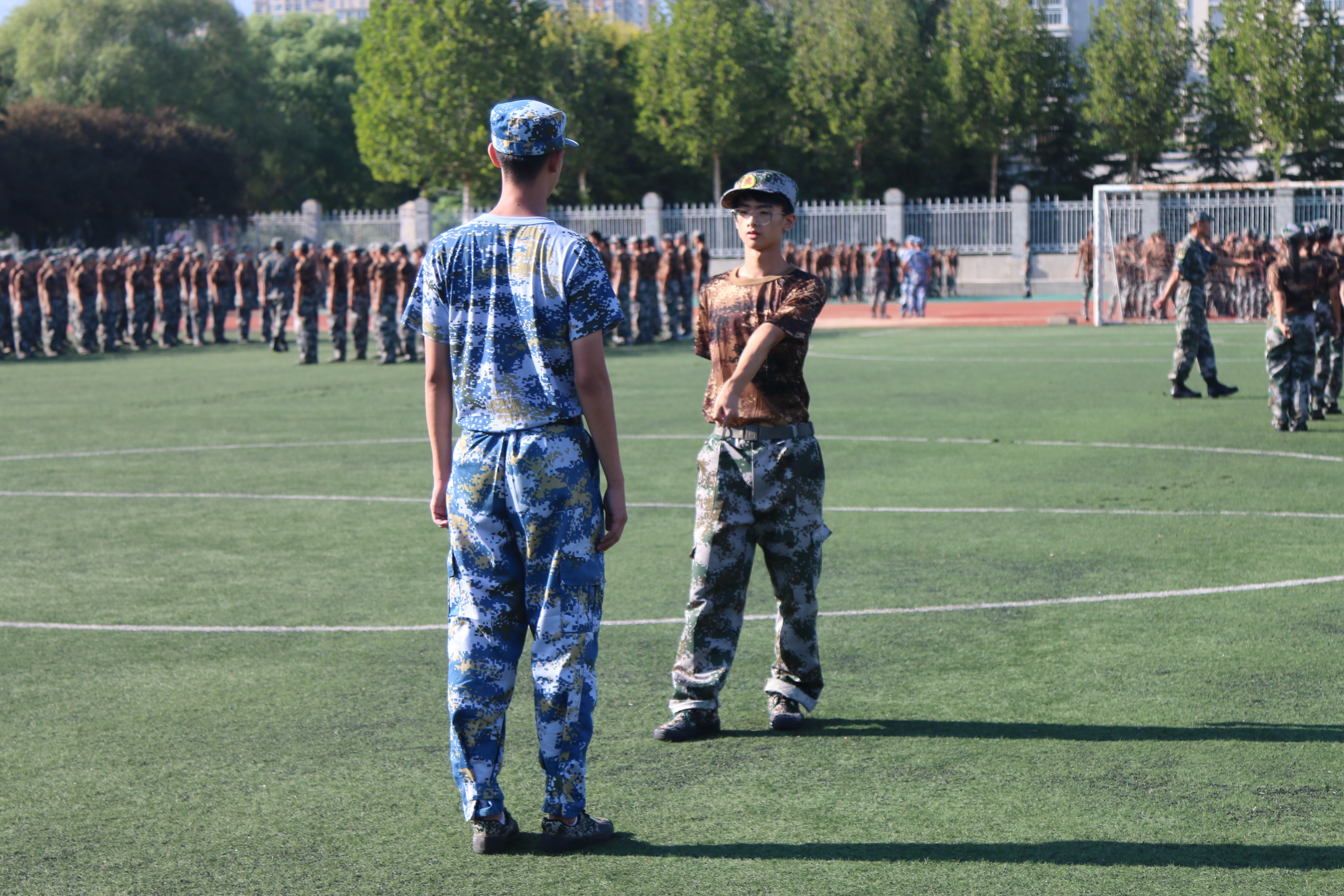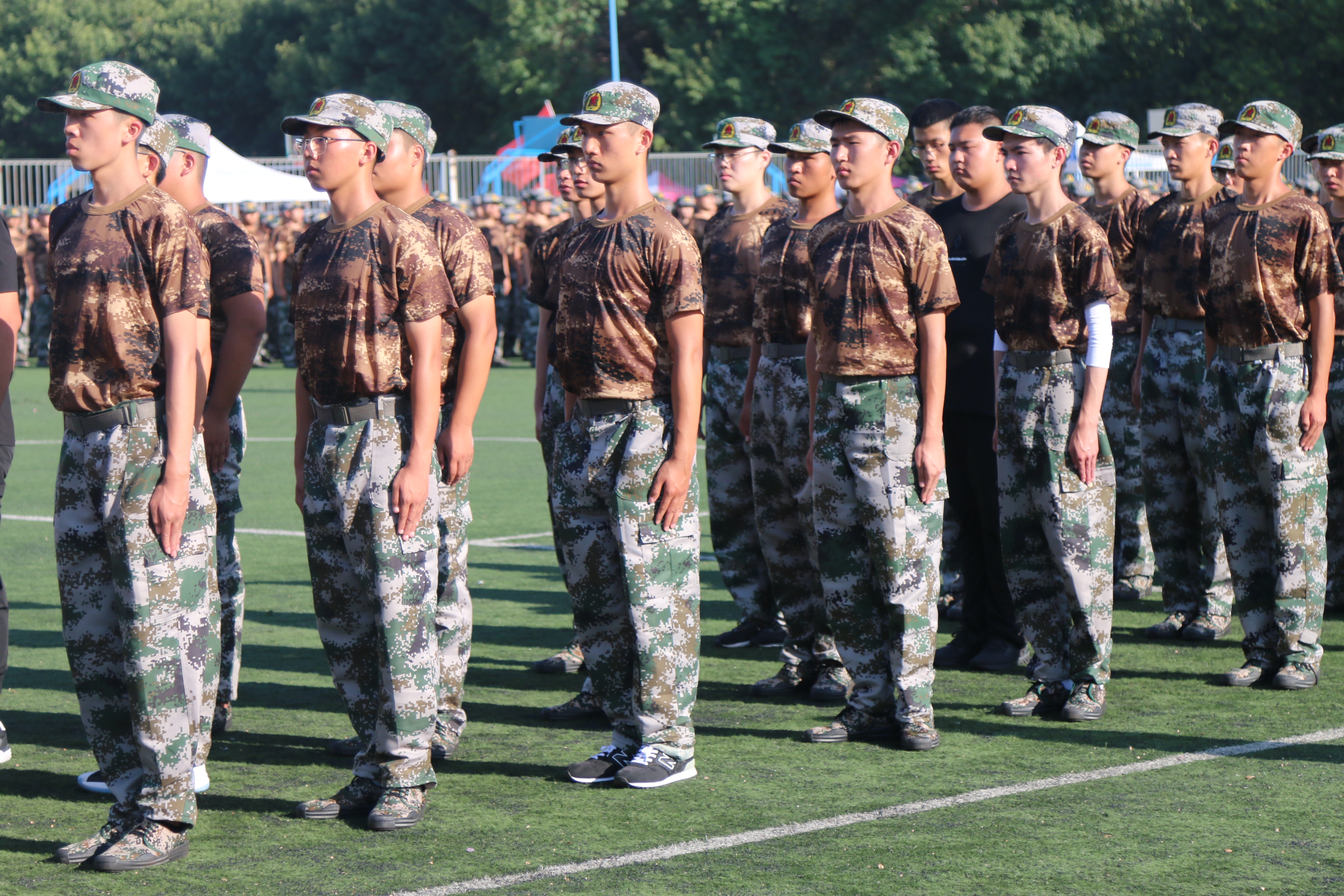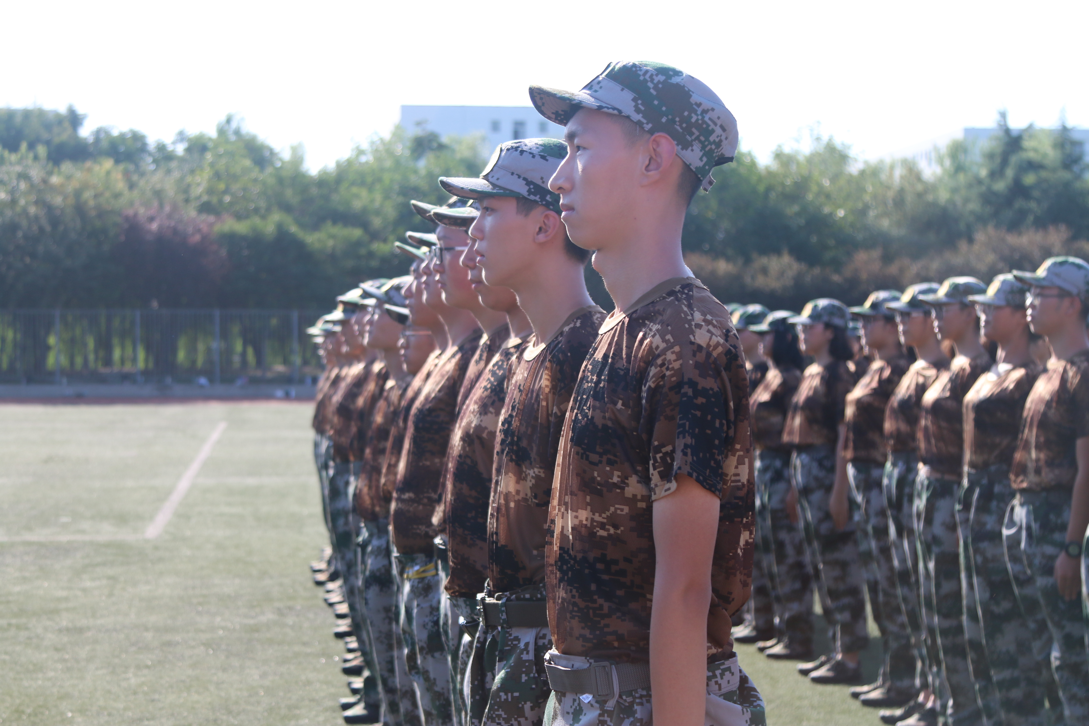 军训现场,同学们站军姿、走方阵,精神饱满地迎接着大学生活中的第一堂课。尽管训练辛苦,但他们并没有退缩,依然严格按照教官要求完成动作,展现出雷厉风行的作风,坚定不移的毅力。训练之余,教官与同学们一同拉歌,让同学们学会乐于吃苦、苦中作乐的优秀品质。