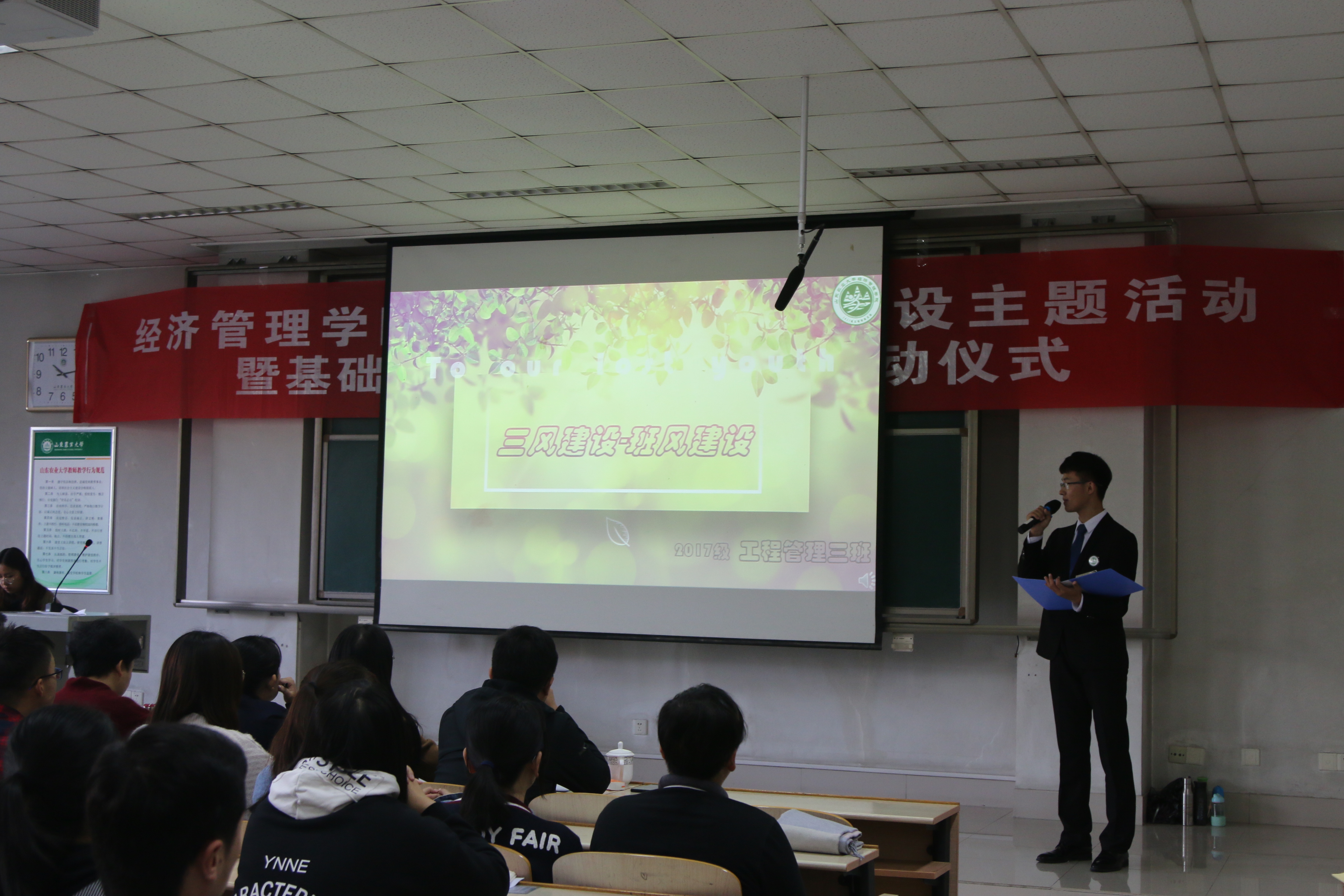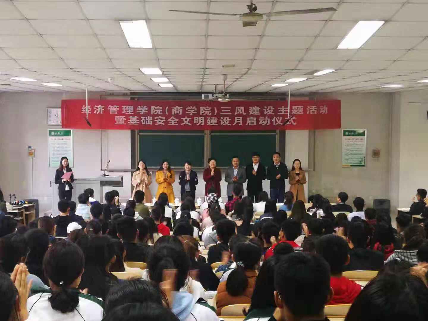 三风建设主题活动是经管学院围绕加强学风建设开展的系列活动,包括强班风——加强班级建设,争创“先锋班级”;正舍风——养成优良舍风,争创“标兵宿舍”;倡实风——倡导积极实践,活跃文化氛围。三风建设主题活动将串联起学院18-19学年的各项活动,意在使同学们在活动中深刻领悟学风建设的内涵,在整个学院形成扎实学习、遵守纪律、团结互助的良好氛围。安全文明月旨在引导我院学生增强文明意识,提高安全防范能力,消除学院安全隐患,建设平安学校。