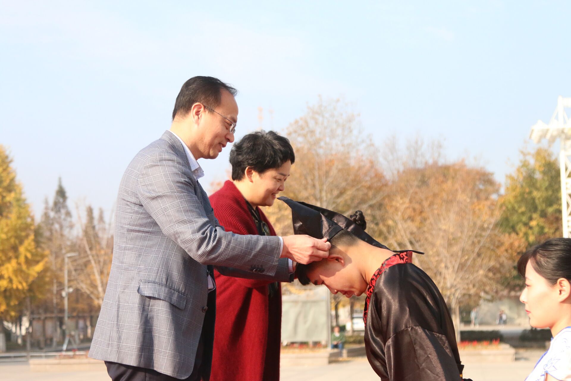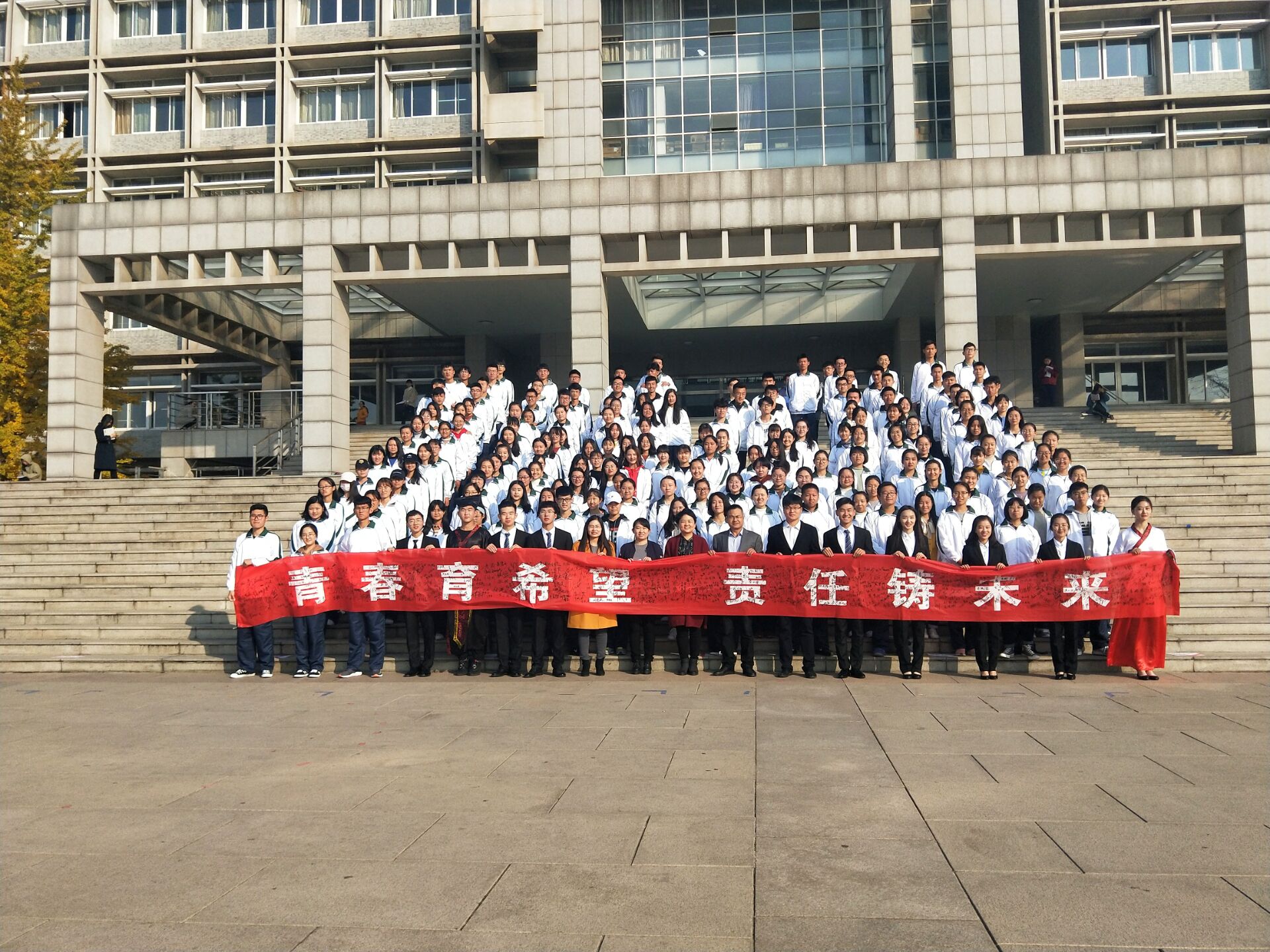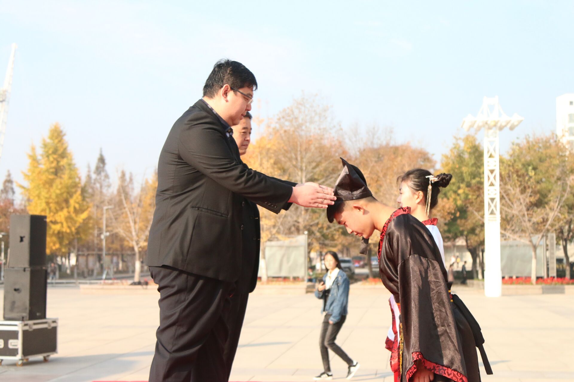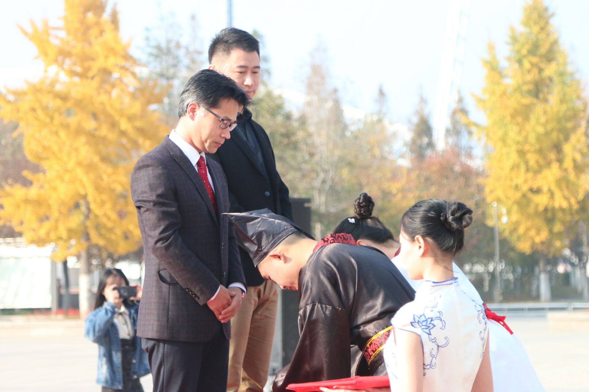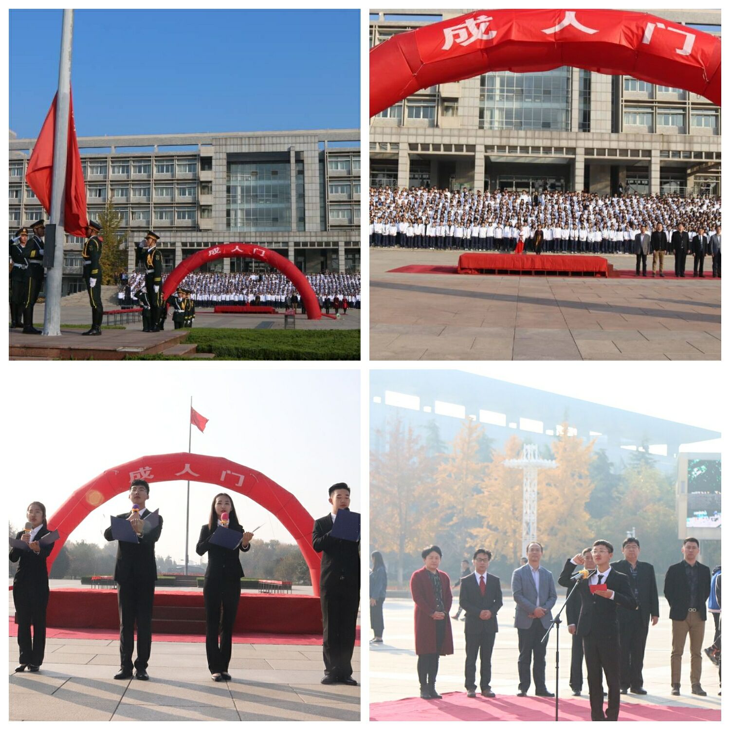 11月3日,新葡的京集团35222vip“青春育梦想,责任铸未来”第五届成人礼活动在南校区综合楼广场举行。学工处副处长石维杰、经管学院党委书记魏立政、党委副书记齐清、专业主任代表、班主任代表、学生家长代表、全体团委老师以及全体2018级新生参加本次仪式。