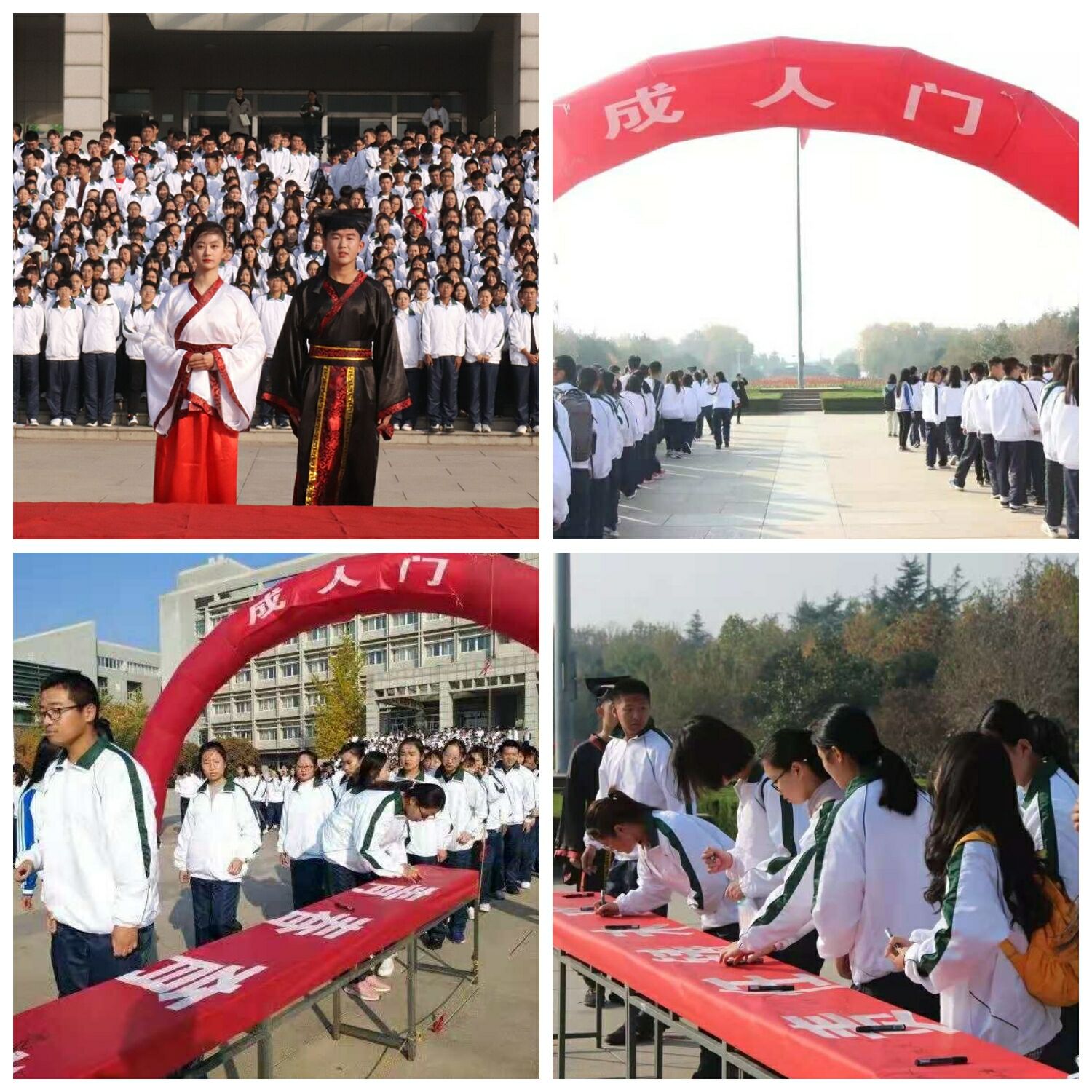 成人礼活动在庄严的升旗仪式中拉开序幕。学院党委副书记齐清对2018级学生提出了心怀感恩、把握当下、坚守底线三点要求,希望学生们心怀梦想,坚定从容的去奋斗。新生诗朗诵《岱下青春》表明了经管学院全体学生奋斗终生、不负青春的宣言。2018级学生代表身着汉服,接受魏立政等师长的加冠加钗,行正规拜礼,石维杰老师对新生进行教诲。全体同学集体宣誓,穿过成人门,在横幅上郑重地签上了自己的名字,肩负责任,带着梦想步入神圣庄严的新阶段。