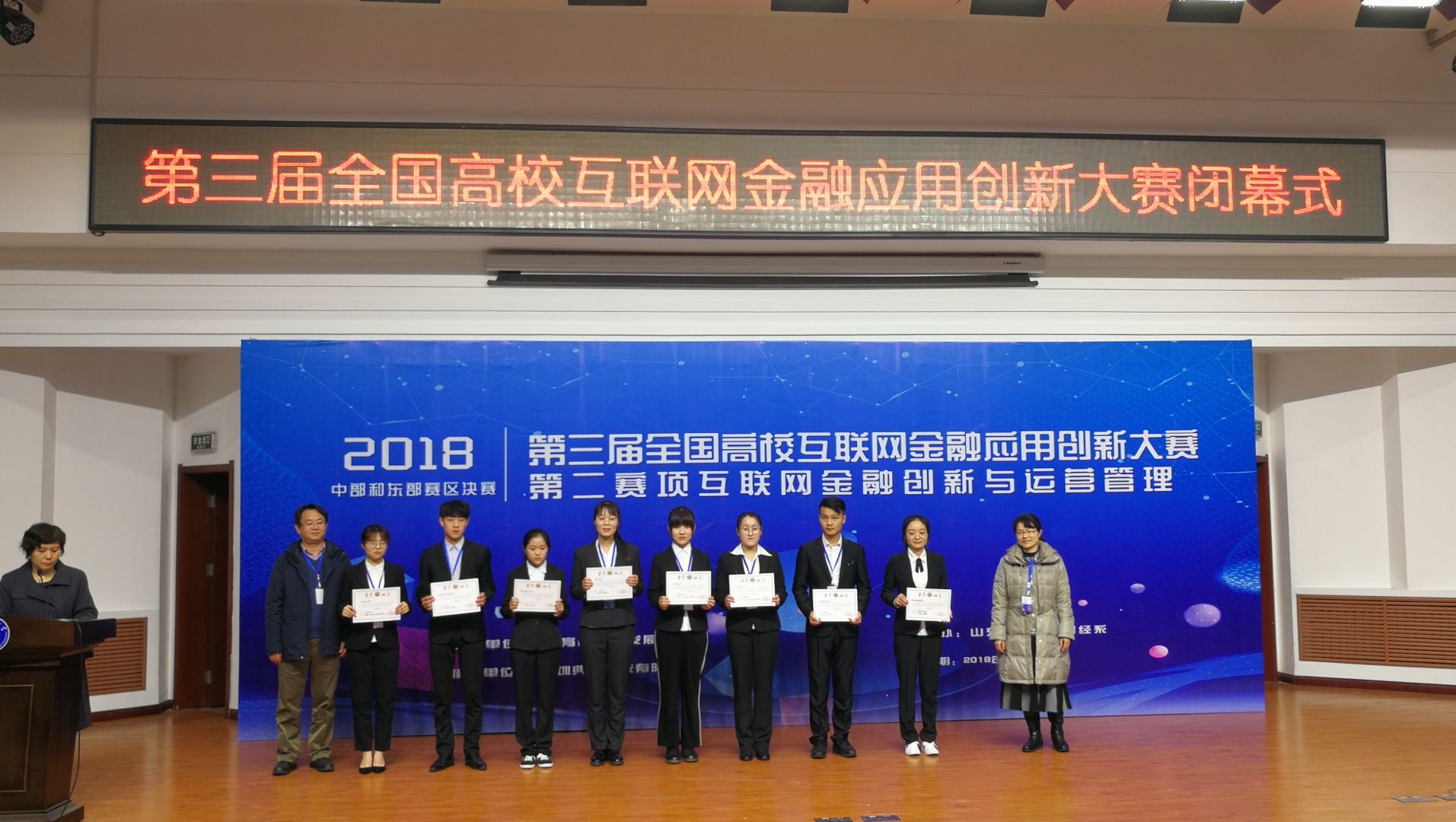 近日,由教育部科技发展中心举办的2018年第三届全国高校互联网金融应用创新大赛中部和东部赛区决赛在山东科技大学成功落下帷幕。学院派出三支学生队伍,分别斩获二等奖两项、三等奖一项。