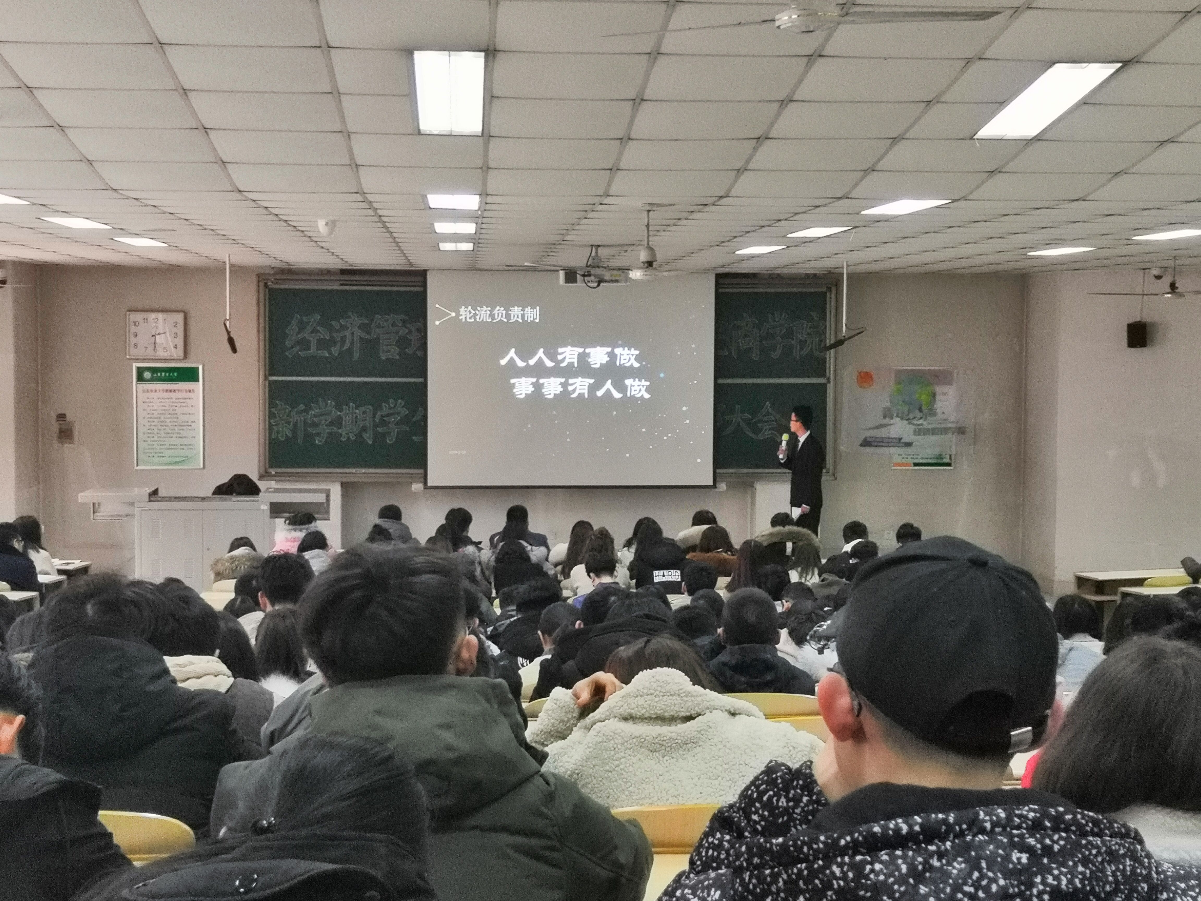 2月24日,新葡的京集团35222vip学生干部大会在N104教室举办,学院全体团委老师、各年级班长团支书及部分学生会成员参加会议。