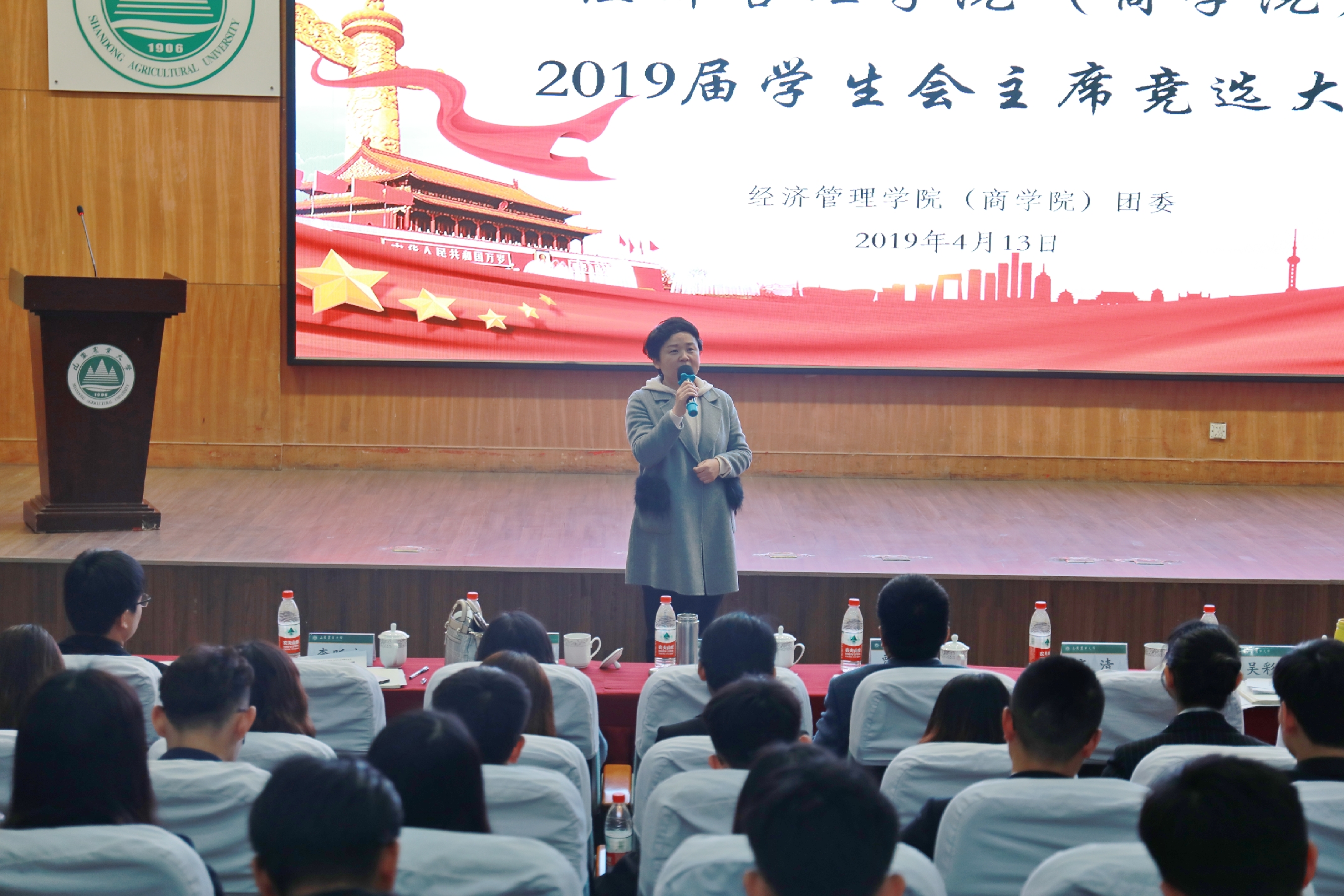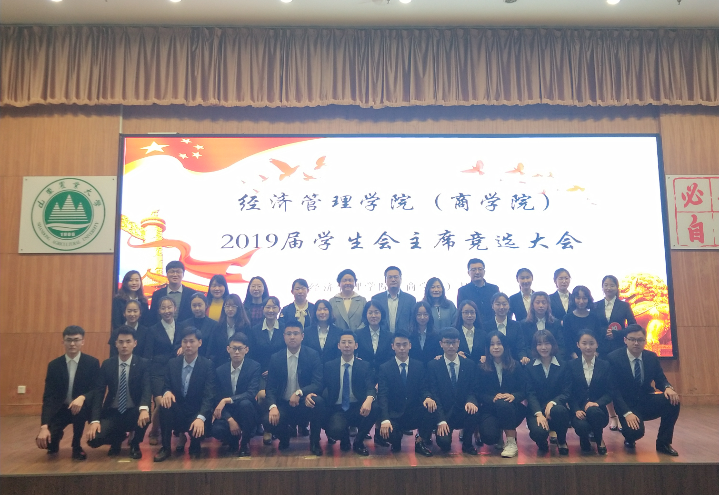 4月13日,经管学院(商学院)2019届学生会主席竞选大会在南校区第一学术报告厅举行。学院党委副书记齐清,全体辅导员,2017、2018年级班长团支书和部分学生会成员参加大会。