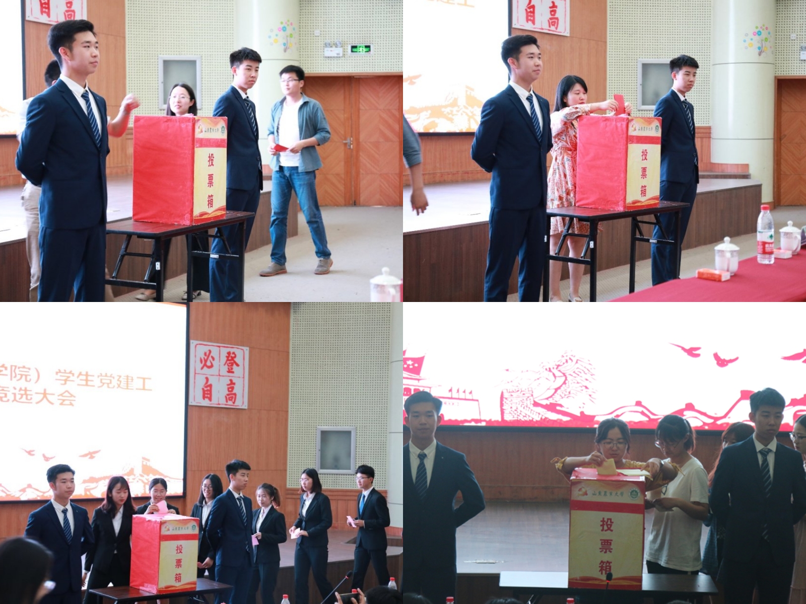 5月23日,经管学院(商学院)2019届学生党建工作委员会主席竞选大会在南校区第一学术报告厅举行。全体辅导员,2017、2018级班长团支书和部分学生代表参加会议。