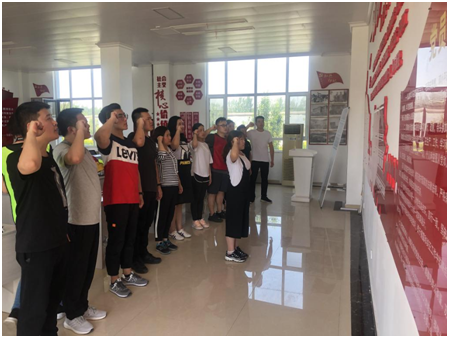 在农场的党建活动室,研究生党员重温了入党誓词。全体同学瞻仰了抗日自卫战纪念碑。