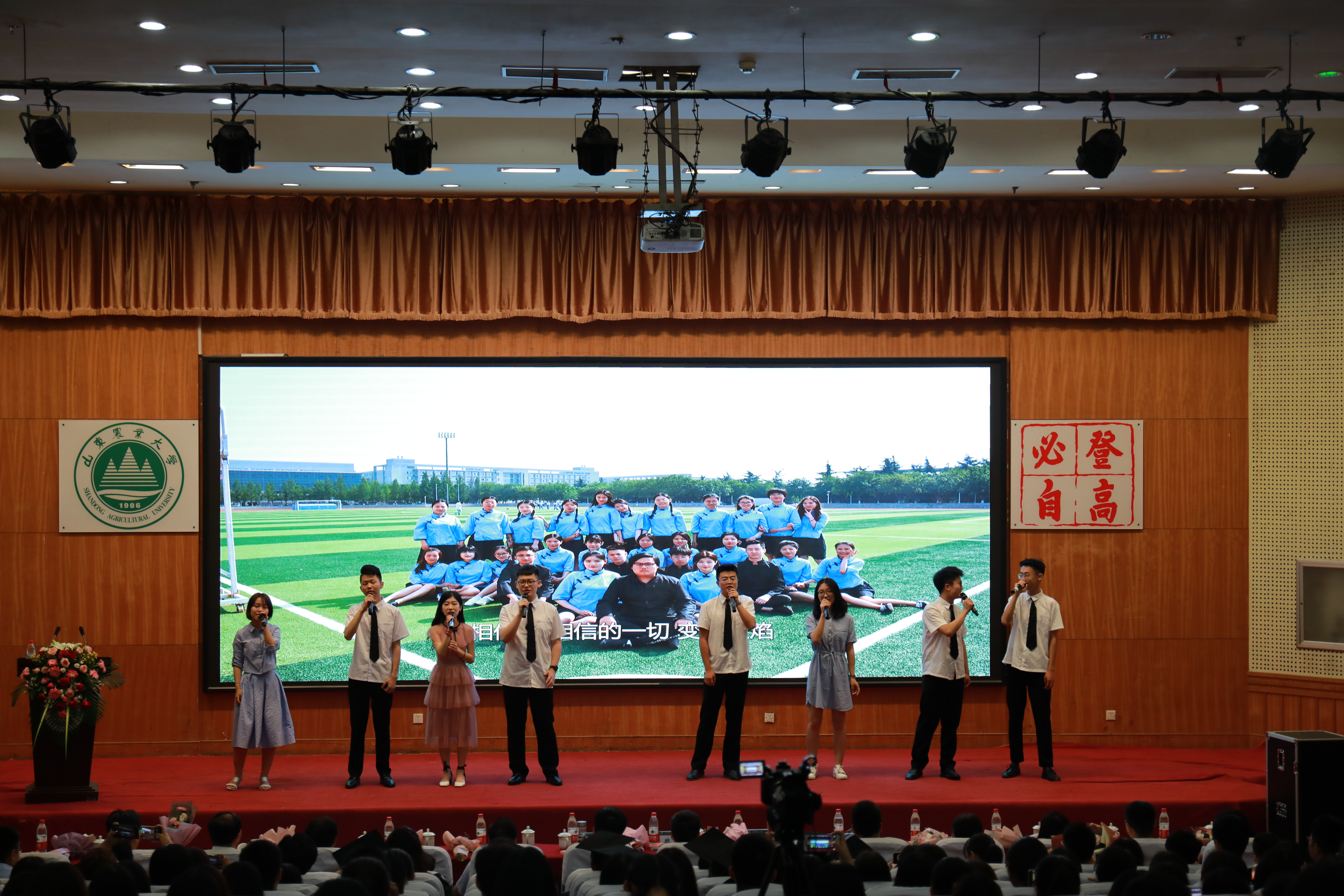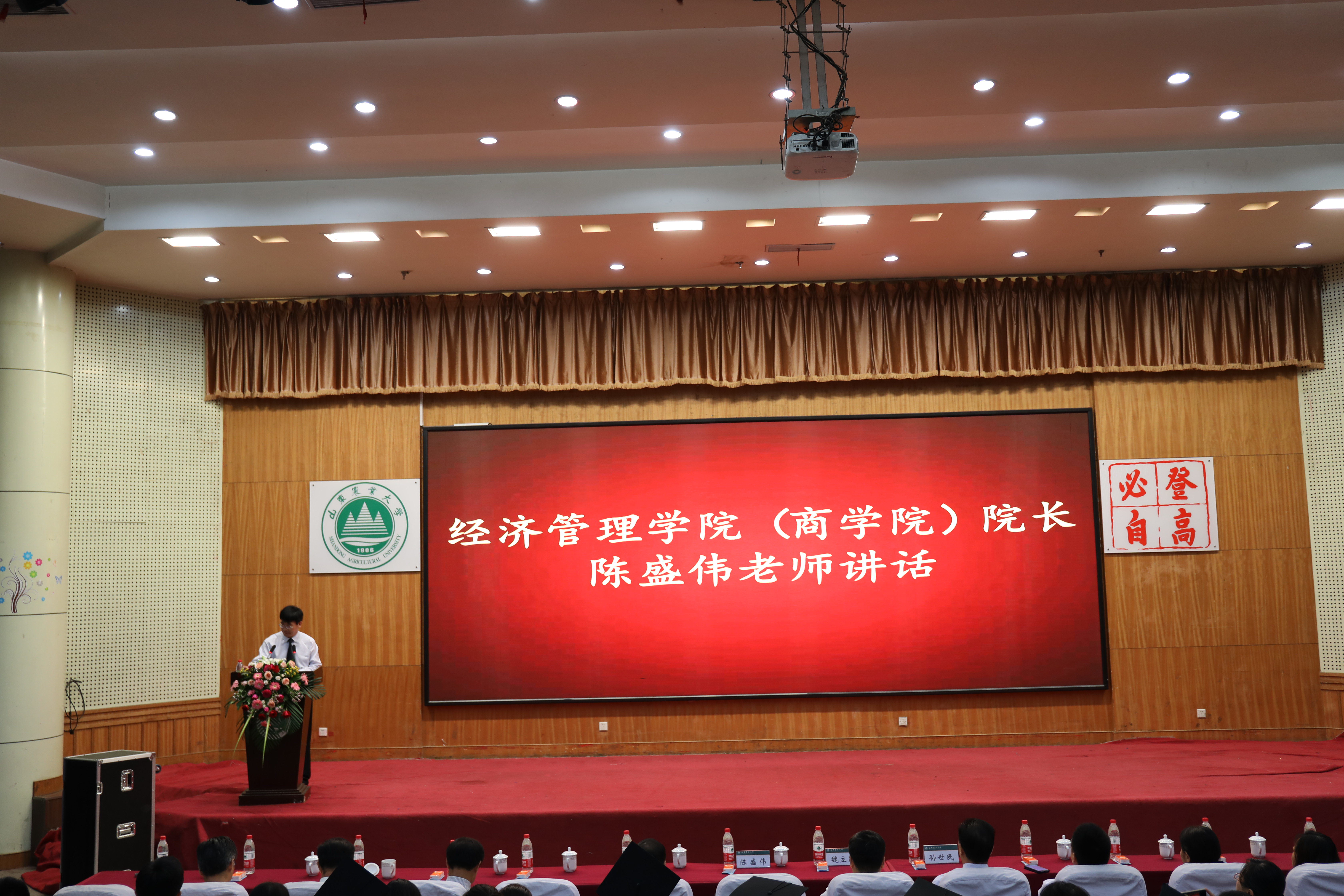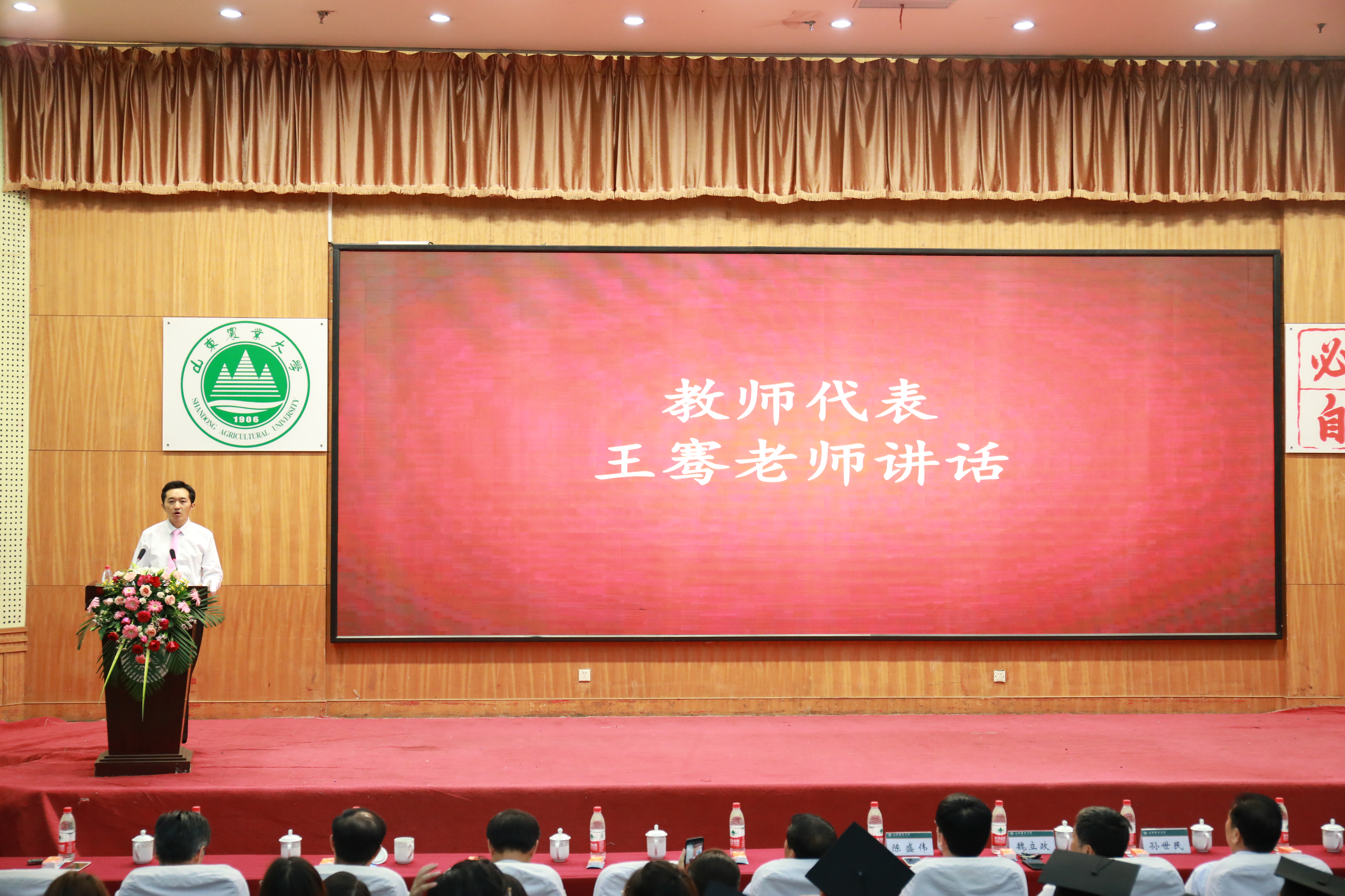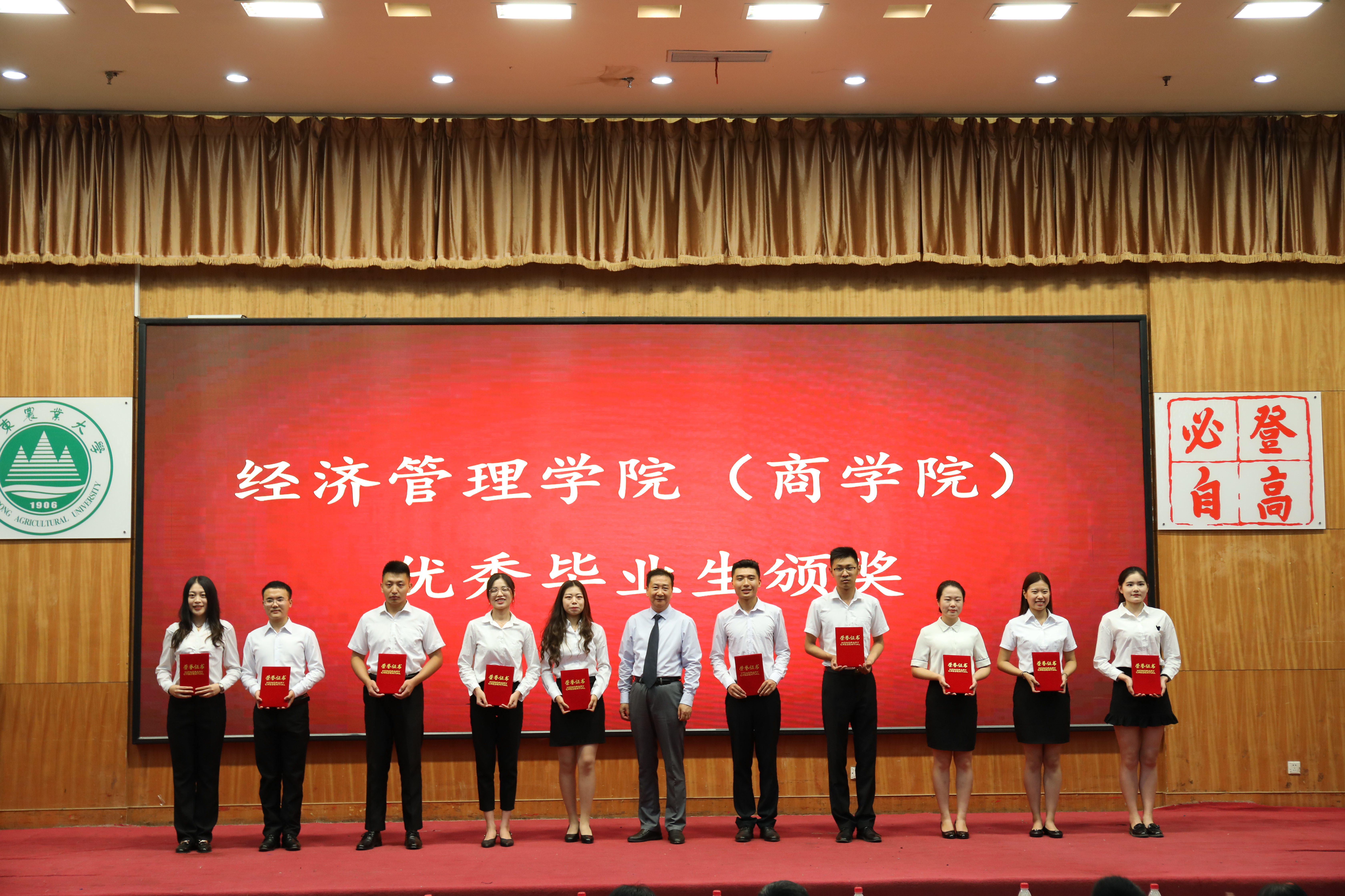 典礼开始,全体起立,奏唱国歌。陈盛伟院长首先致辞,他对本届毕业生取得的成绩表示肯定,并代表全院师生向毕业生传达衷心的祝福。院长希望毕业生们能够对曾经的同学说出知心话;要坚持自己的人生态度,不随波逐流;在毕业之际有大胸怀、大追求、大担当;在人生的每个阶段都要管控自己,铭记登高必自的校训。随后,教师代表王骞发言,王骞老师用幽默风趣的语言表达出对毕业生的充分肯定和不舍,嘱托同学们要继续奋斗,要为家庭、为单位、为国家多做贡献,谱写更加辉煌的篇章。随后,教授委员会主任孙世民为优秀毕业生颁奖,院长陈盛伟为班级联络员代表颁发聘书,党委书记魏立政为西部志愿者送上行囊。最后,记录了毕业生点滴生活的视频《经蕴芳华》在大屏幕上呈现,七位毕业生献上歌曲串烧,唱出对母校、老师、同学的眷恋和感恩,真挚的歌声感染了全场。在合唱《朋友》中,典礼落下帷幕。