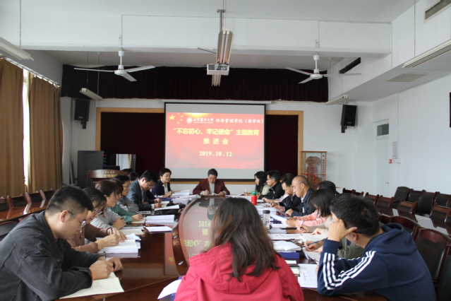 10月12日下午,学院在文理大楼802召开主题教育工作推进会,梳理总结主题教育开展以来的主要工作,安排下一步的主要任务和重点举措,推进学院主题教育持续深入开展。学院班子成员,党支部书记、副书记、支部委员参加此次会议。