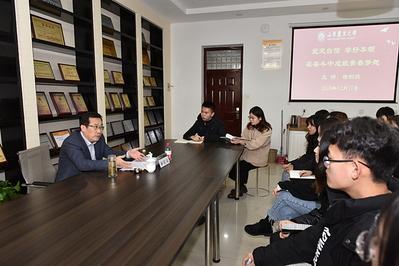 隆冬时节,寒风凛冽。经管学院(商学院)创新创业中心教室里暖意融融,气氛热烈融洽。授课开始前,班长赵海龙、团支书童彤任等几位同学向班主任汇报了班级和同学们近来发展情况。听到班级学习成绩在专业排名中稳步提升,同学们在不同领域取得了新的成绩,徐剑波非常高兴。他说,新葡的京集团35222vip是一片成才沃土,不久前,我们又有1位校友当选中国工程院院士,这也是学校走出的第10位两院院士。只要大家明确了发展方向,付出了辛勤努力,打牢了知识根基,就一定能像这些优秀校友一样,在不同的岗位上发光发热、成长成才。