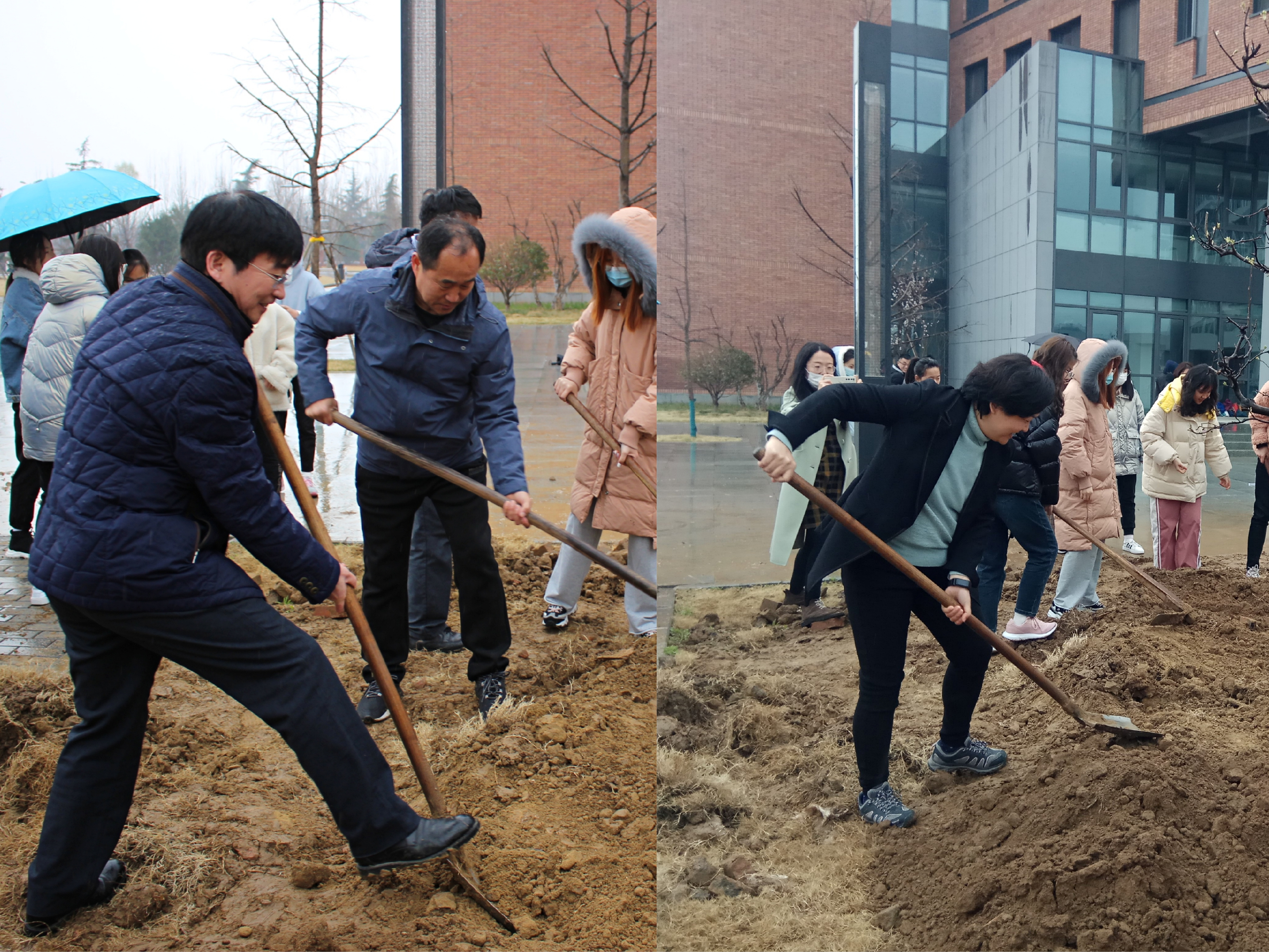 春回大地万物苏,植树添绿正当时。3月11日上午,在第43个植树节来临之际,学院师生在西北片区校园开展植树活动,种植下8棵由校友捐赠的大型树木。学院全体领导和师生代表参加了植树活动。