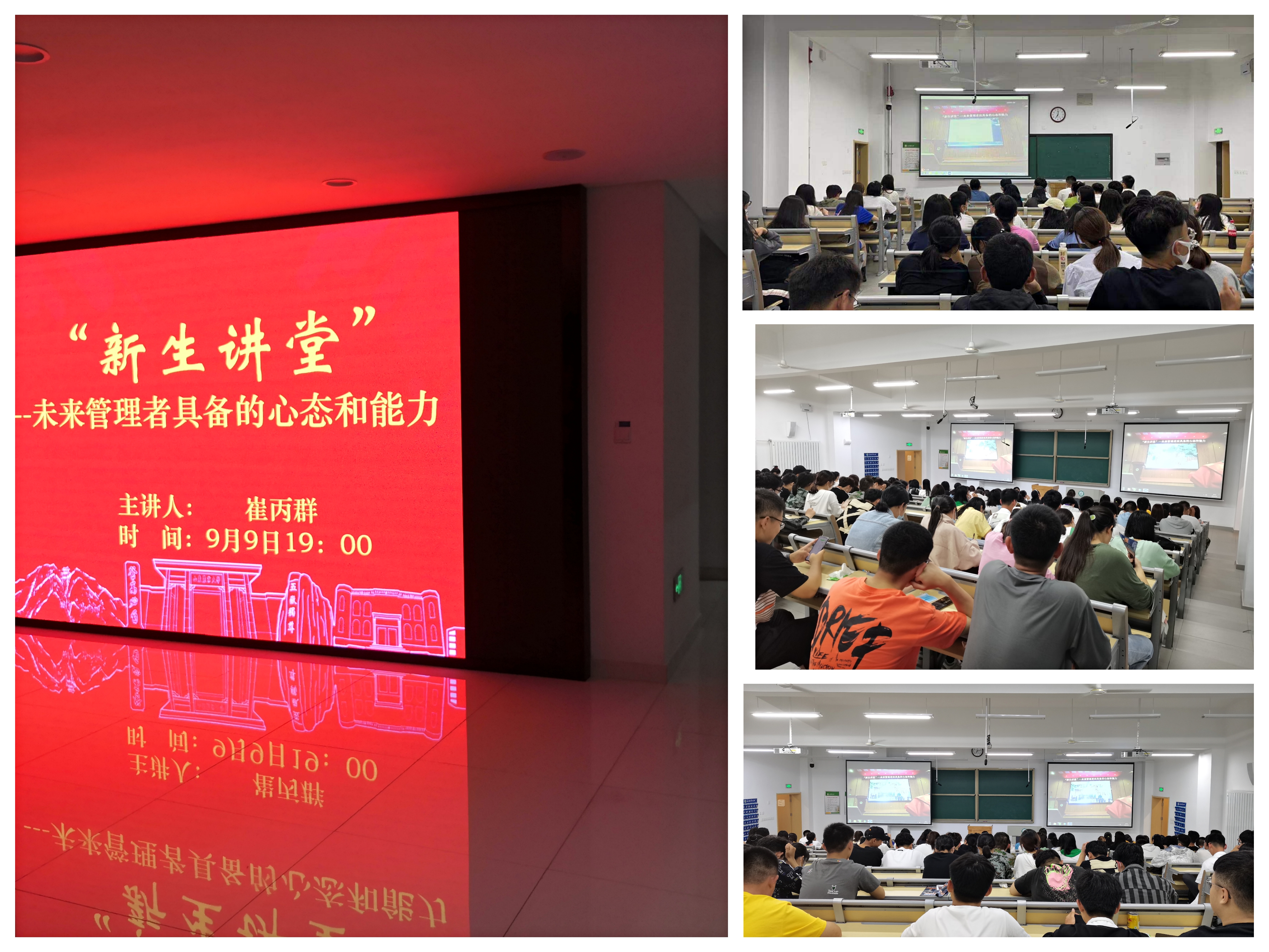 99,学院“新生讲堂”第一讲开讲。本场讲座的主题未来管理者应具备的心态和能力”。学院院长陈盛伟担任主持工商管理系主任崔丙群老师担任主讲嘉宾,全体2021级新生通过主会场和线下分会场同步参与