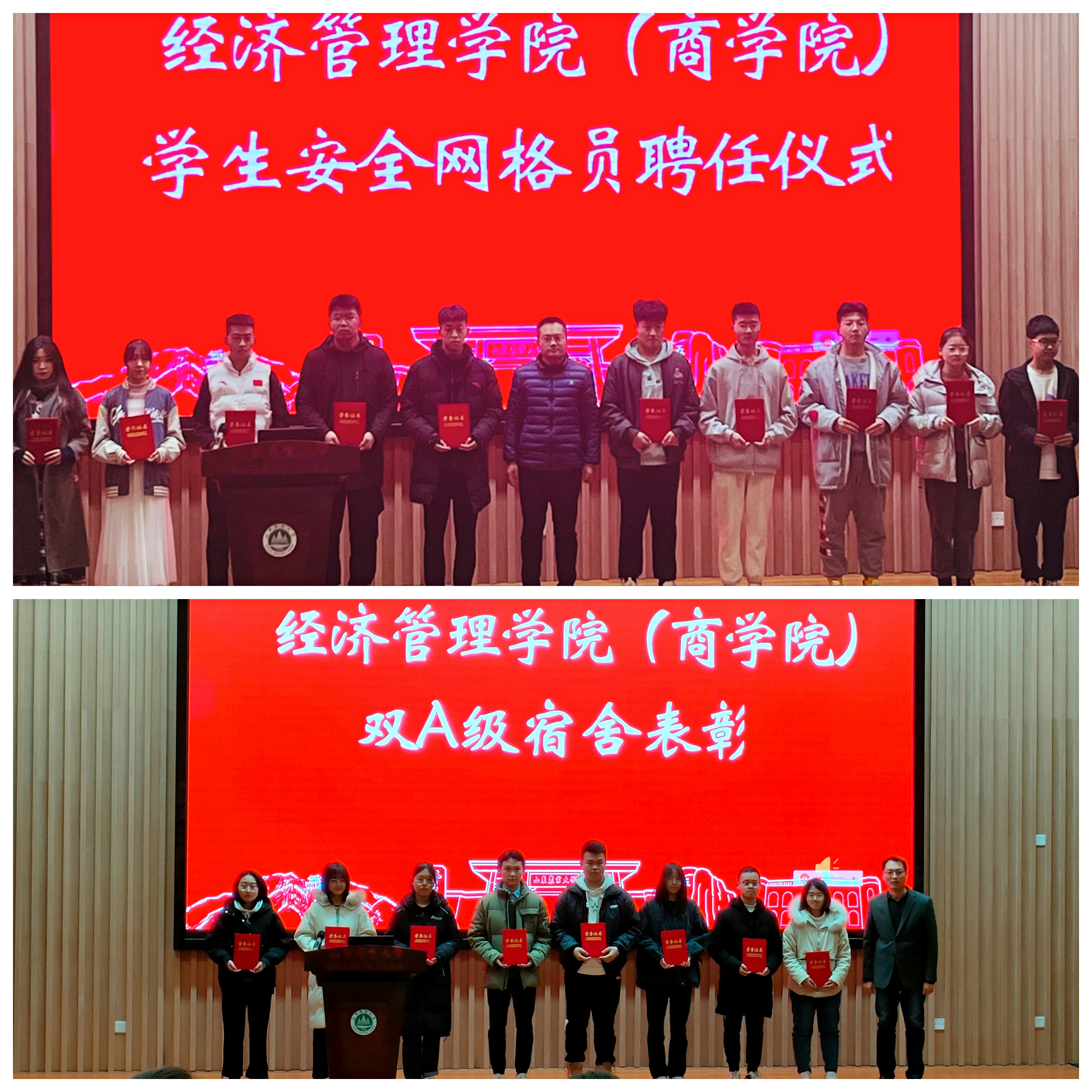 会议伊始,李妥详细介绍了学生安全网格员的职责,杜洪涛宣读了《新葡的京集团35222vip校园安全网格化管理实施方案》,随后举行了学院安全网格员聘任仪式,贾元义为各班级网格员代表颁发聘书并发表讲话,他强调:校园安全关乎所有你我,学生安全网格员是“信息员”、“安全员”,是学生日常管理触角最末端的“毛细血管”,是学院安全网络体系的“眼睛”和“耳朵”。学院要发挥班级、宿舍的网格作用,引导大家共同努力,共同营造安全文明的校园环境。会上还表彰了学生公寓安全卫生文明双A级优秀宿舍。