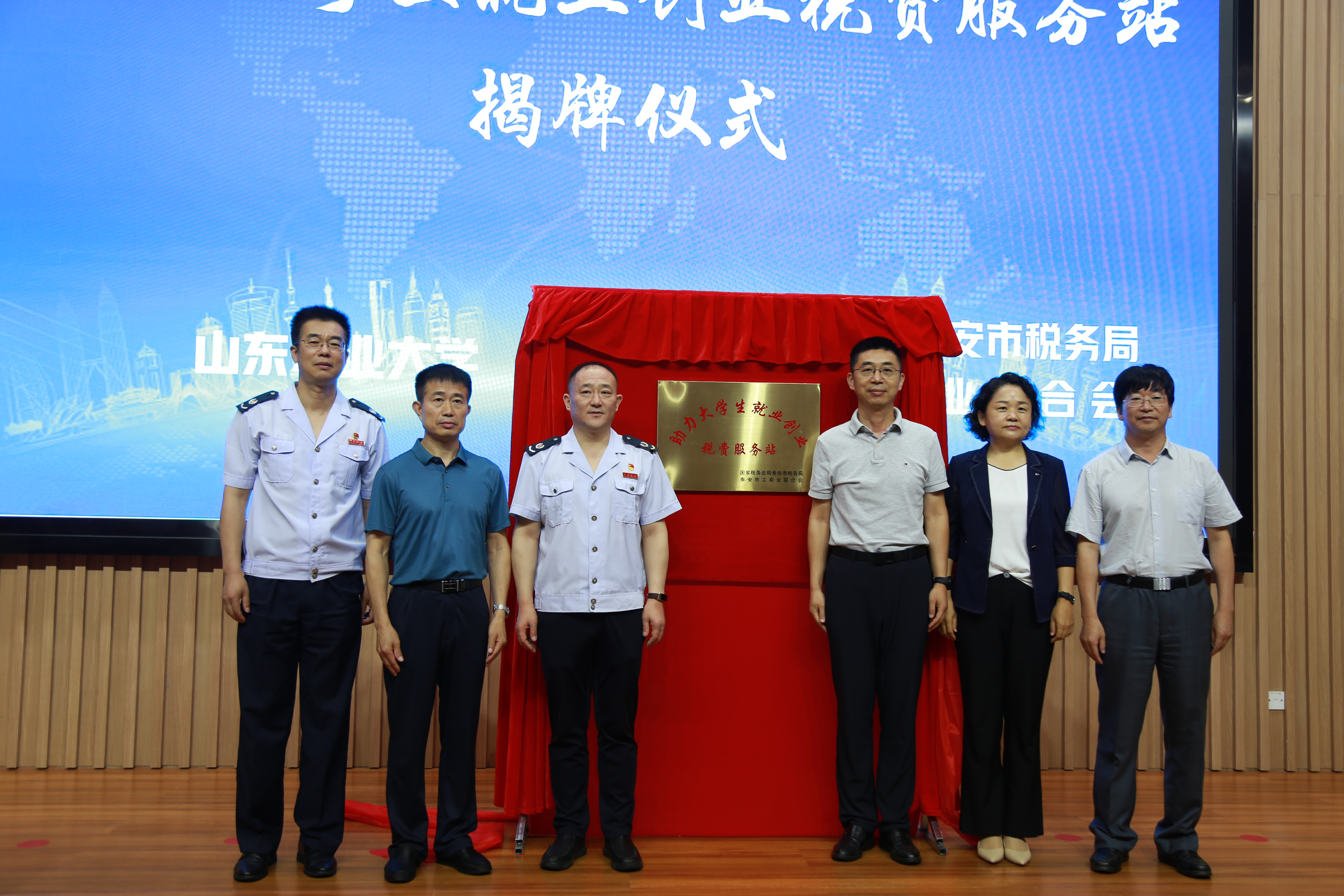 6月10日上午,“助力大学生就业创业税费服务站”成立揭牌仪式在泮河校区西北片区报告厅举行。学校学工处处长王群、学院党委书记齐清、院长陈盛伟,与泰安市税务局副局长张延平、市工商联副主席张建之、泰山区税务局局长王立军,共同为服务站成立揭牌。