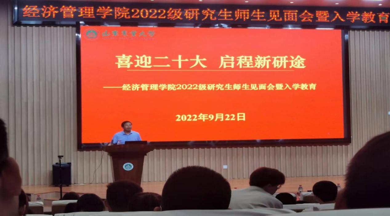 9月22日下午,经济管理学院2022级研究生师生见面会暨入学教育在学术报告厅举行。见面会由副院长徐宣国主持,学院党委书记齐清、教授委员会主任葛颜祥、各系主任、图书馆工作人员出席会议,研究生辅导员尚健及全体研究生参加会议。