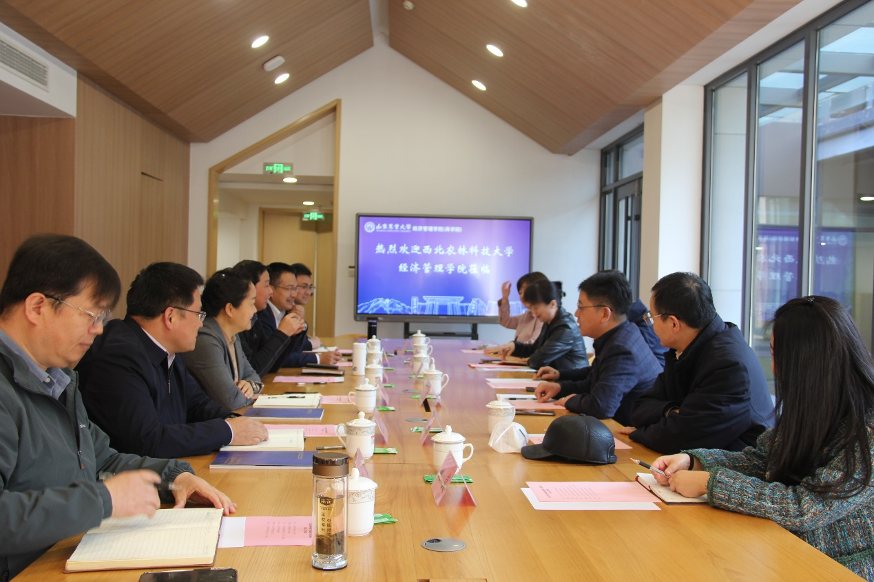 4月7日,西北农林科技大学经济管理学院院长夏显力、二级教授罗剑朝一行来我院访问考察。学院党委书记齐清接待来访人员,学院班子、教授委员会成员、教师代表参加座谈。