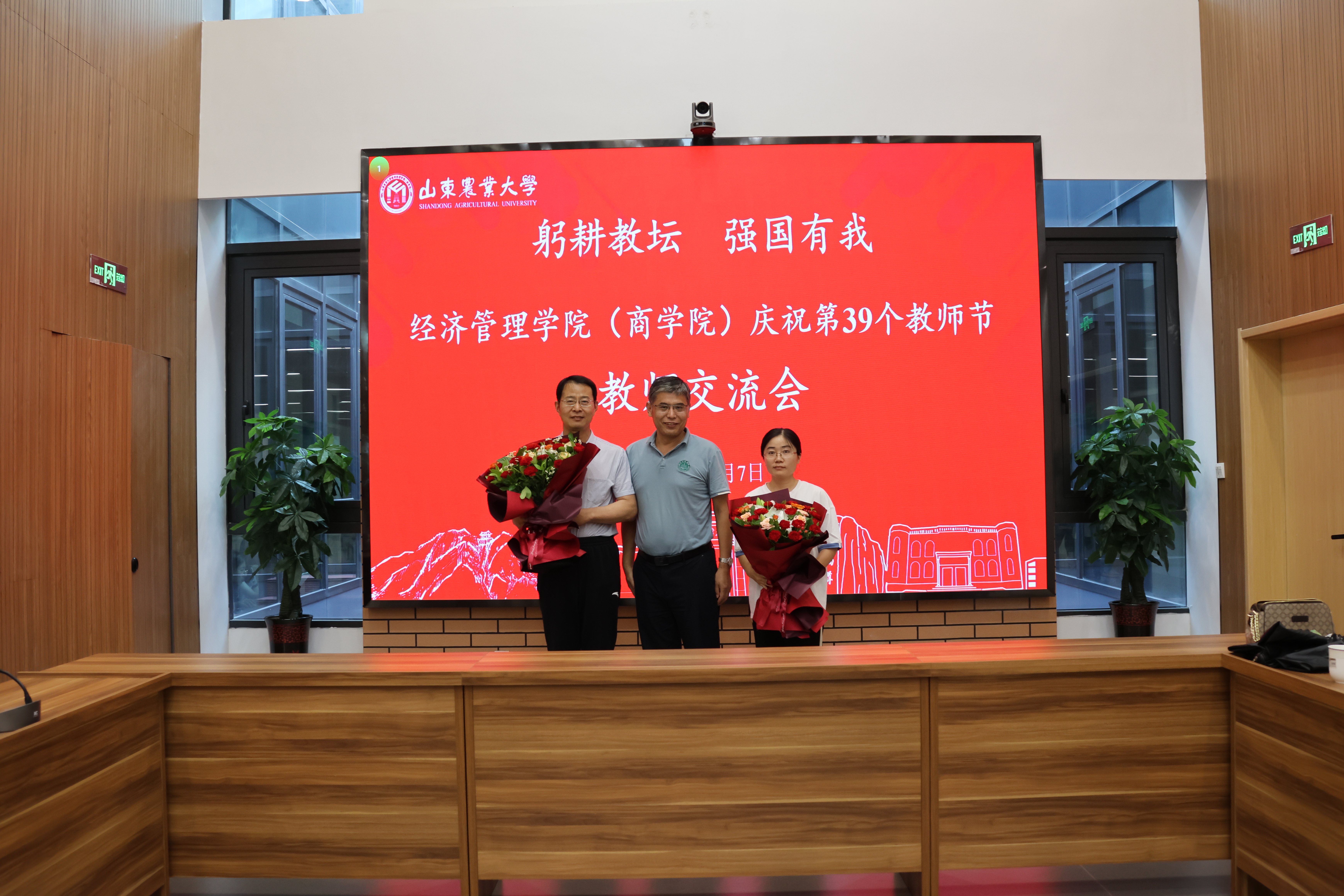 会议开始,院长周玉玺向长期以来辛勤耕耘在教学、科研、管理和服务一线的全体教职工,致以节日的祝贺和衷心的感谢。他表示,经管学院是一个友爱、和谐、温暖的大家庭,学院成绩的取得离不开全院教职工的辛勤付出和共同努力。学院全体教师要以“躬耕教坛、强国有我”的使命感和责任感,坚持立德树人根本任务,争当“四有”好老师。周玉玺还代表学院为获得2023年度国家社科基金和国家自然科学基金项目的张复宏、杨莲两位教师送上鲜花。