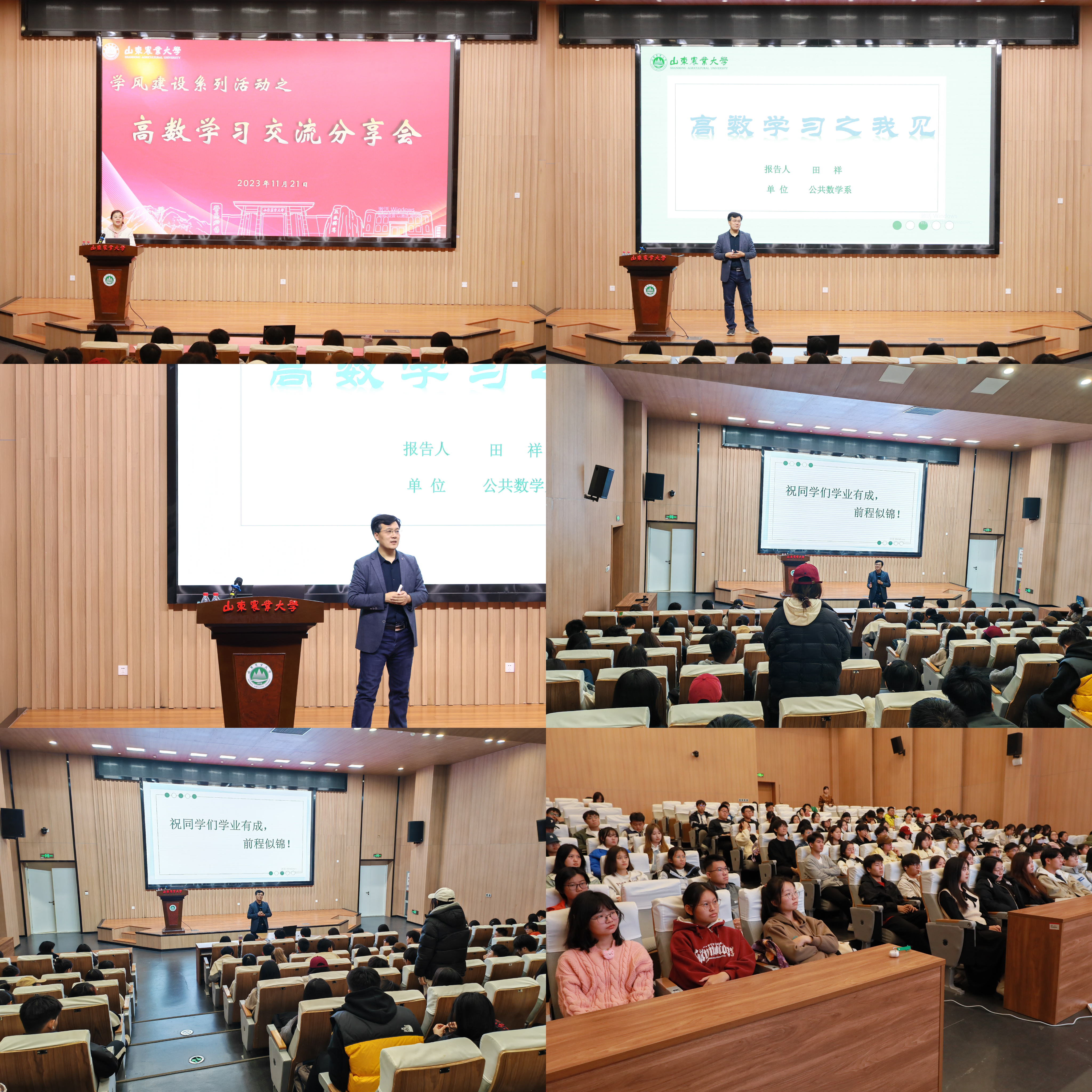 田祥教授以“高数学习之我见”为主题,作专题报告,从高等数学的重要性、高等数学与高中数学教学的差异和如何学好高等数学三个方面分享高数学习的经验与技巧。分享会上,田祥教授强调了学习高数的重要性,指出高等数学能锻炼同学们的耐心与定力的作用,详细解读高等数学与高中数学的区别与联系,强调学习高数要端正学习态度,学会进行自身的纵向对比,进而树立学习的信心。在互动交流环节,针对课程内容多、教学进度快、部分同学基础薄弱等问题,田祥教授一一给予耐心细致的解答,帮助同学们解惑答疑。