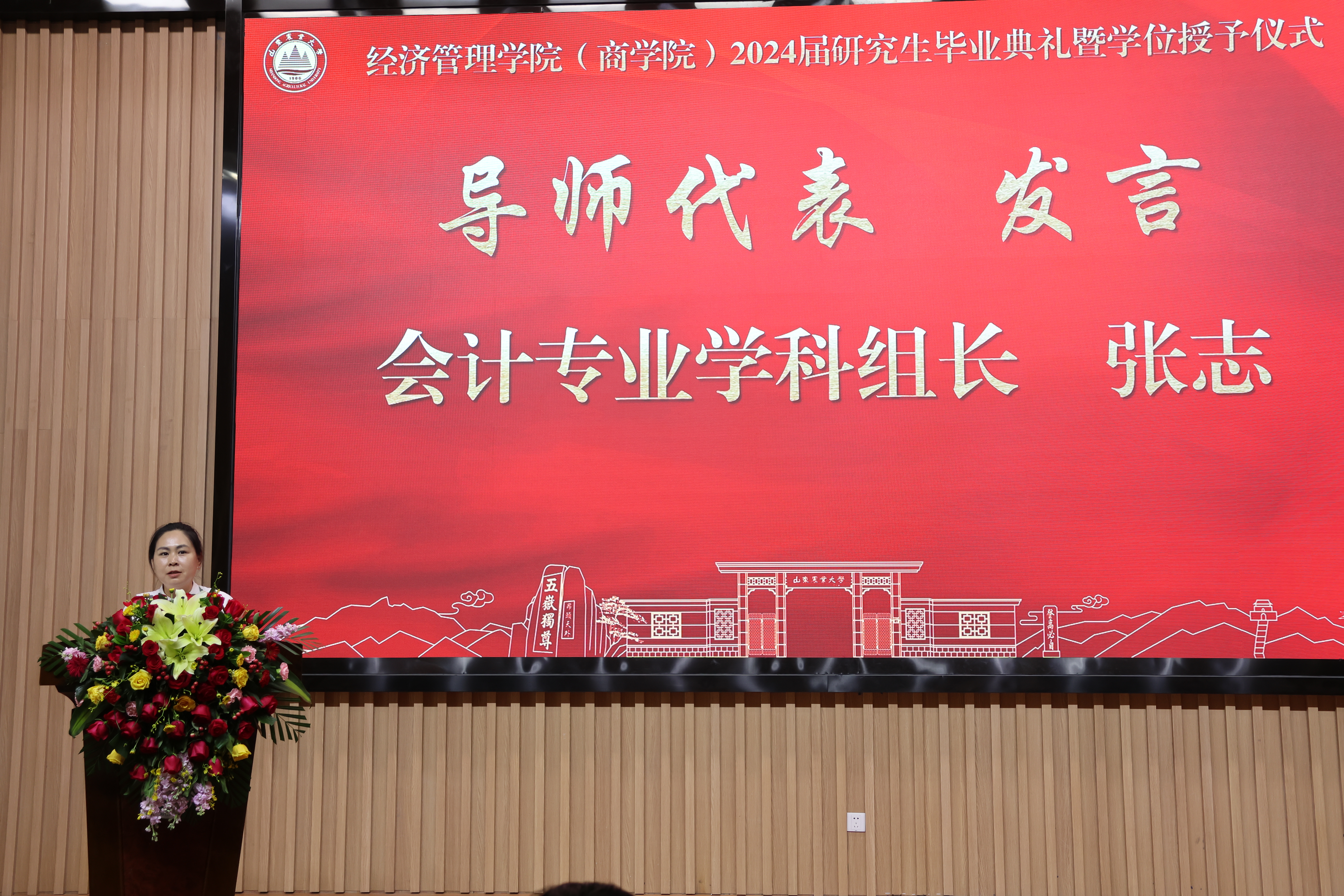 学院导师代表张志老师在致辞中勉励同学们成功没有捷径,要以取乎其上的优秀标准主动学习、享受学习、终身学习。面对充满竞争与挑战的社会,要保持思考的习惯,积累丰富的专业知识,锻炼解决问题的能力。希望大家在选择中坚守底线,坦然对待挫折,学会接受并享受平凡的生活;心系母校,秉承“登高必自”的校训,追风赶路莫停留,平芜尽处是春山。