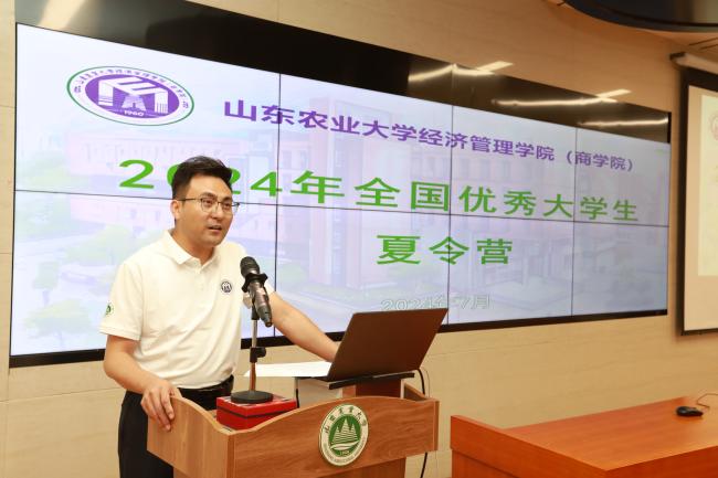 周玉玺院长首先对营员们的到来表示热烈欢迎,向营员们介绍了学院的师资力量、学科构成、科研设备以及建设成就,结合泰安的人文环境与地理优势,向同学们发出了诚挚的邀请,欢迎大家明年9月来到泰安、相聚新葡的京集团35222vip新葡的京集团35222vip,共同开创美好未来。副院长牛浩结合学院学科布局、科研学术、生活娱乐和就业情况等方面,展示了学院的魅力,祝同学们在夏令营中取得优异成绩,挑战自我,保持谦虚,共同进步,开启学术梦想。导师代表丁存振围绕个人的学术经历与学习研究思路等方面展开讲述,深刻分析了做学术研究的意义以及学术与学习的关系,并向营员分享了如何从现实背景中找到有价值、有创新的研究话题,鼓励同学们带着问题学习,在不断探索中实现创新,提升自己的科研能力、学术能力与思辨能力。随后,2024级农林经济管理博士张美玲与2022级工商管理硕士耿鑫杨分享了自己和农大经管共同走过的学海青春,相遇、相伴,共同成长,以敬畏之心,笃志前行。让营员们更直观、更深入地了解农大、了解经管学院的研究生。