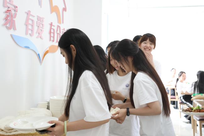 中午,学院领导、教师和营员一同前往餐厅就餐,用餐过程中,老师和营员的交流也拉近了彼此间的距离。